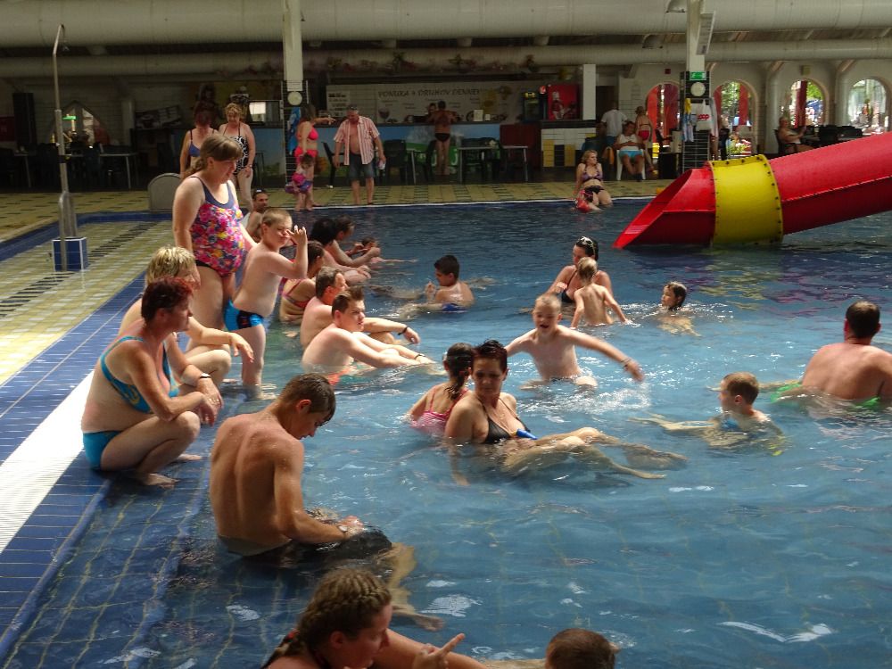 Cílem letošního výletu bylo termální koupaliště Velký Medér. Autobus zaplněný dětmi toužícími po vodních hrátkách a rodiči očekávajícími příjemně prožitý den, vyrazil po 6. hodině ranní. Krátce po desáté měli už všichni možnost zjistit, zda budou jejich očekávání naplněna. A bylo se na co koukat a z čeho si vybírat – areál byl již kompletně v provozu, takže bylo možnost využít všechny bazény a atrakce (skluzavky i tobogány), písková hřiště, kvalitní sociální zázemí a místa pro příjemné posezení a občerstvení. Některým klasickým slovenským specialitám samozřejmě neodolali ani návštěvníci z našich řad a intenzivní vodní radovánky prokládali chutným občerstvením včetně tradičních zmrzlin. Počasí tentokrát bylo po celý den zcela tropické, v autobuse jsme byli chráněni klimatizací a v areálu koupaliště se měli všichni možnost chránit účinnými opalovacími krémy, pobytem ve vodě nebo ve stínu, přesto někteří odjeli nezdravě červení, na což si příště a v nastupujícím létě určitě dají pozor.