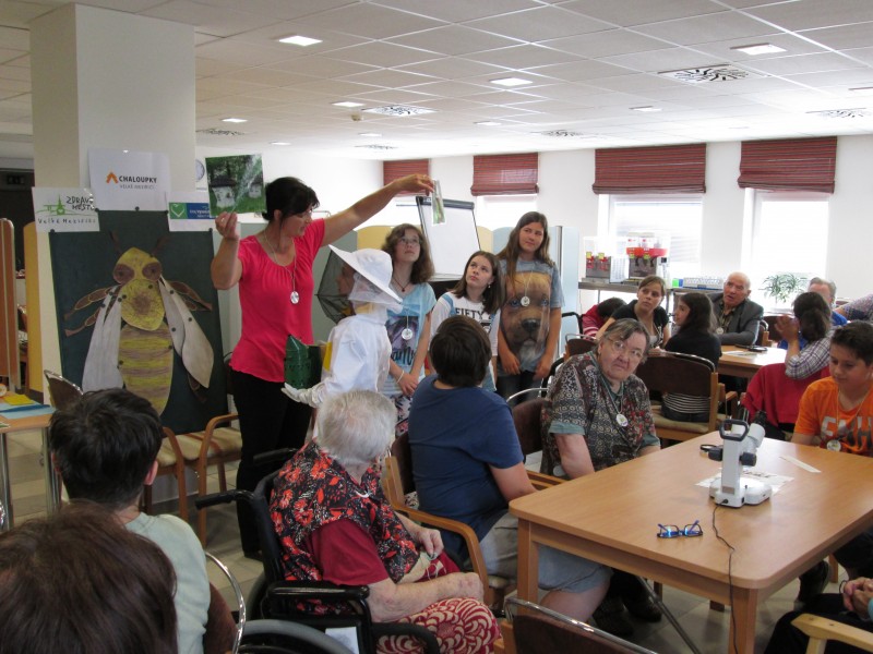 Dopoledne plné aktivit s tématem včely připravilo ekocentrum Chaloupky Velké Meziříčí v úterý 14. června 2016 pro klienty domu pro seniory Velké Meziříčí a žáky základní školy Tasov