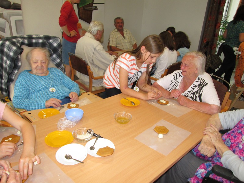 Staříčkové a děti se sešli v jídelně Domu pro seniory, kde se rozdělili do menších skupinek. Hned od počátku se mezi dětmi a seniory rozproudila debata, do které se děti, ač byly v dosud neznámém prostředí, bezprostředně zapojovaly. Spolupráce pokračovala v průběhu celého programu. Společně skládali tělo včely z jejich jednotlivých částí, předváděli si, jak vypadá úl a co všechno musí mít včelař na sobě a při sobě, než začne v úlu pracovat, ochutnávali různé druhy medů a zkoumali ostatní včelí produkty, společně vymýšleli názvy pro jednotlivá zaměstnání včel dělnic a dívali se na svět „včelíma očima“. Senioři se s dětmi podělili o vlastní zkušenosti s chovem včel, neboť mnozí z nich byli v minulosti aktivními včelaři. Bylo to příjemně strávené dopoledne. Pro seniory to byla možnost setkat se s dětmi a zažít novou zkušenost a radost ze spolupráce, pro děti zase příležitost dozvědět se prostřednictvím starších občanů nové a zajímavé informace. Na konci programu si každý vyrobil marcipánovou včelu. Senioři si na památku odnesli ručně vyráběnou svíčku z včelího vosku. Akce se zúčastnilo 19 klientů Domu pro seniory a 13 dětí.