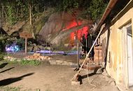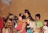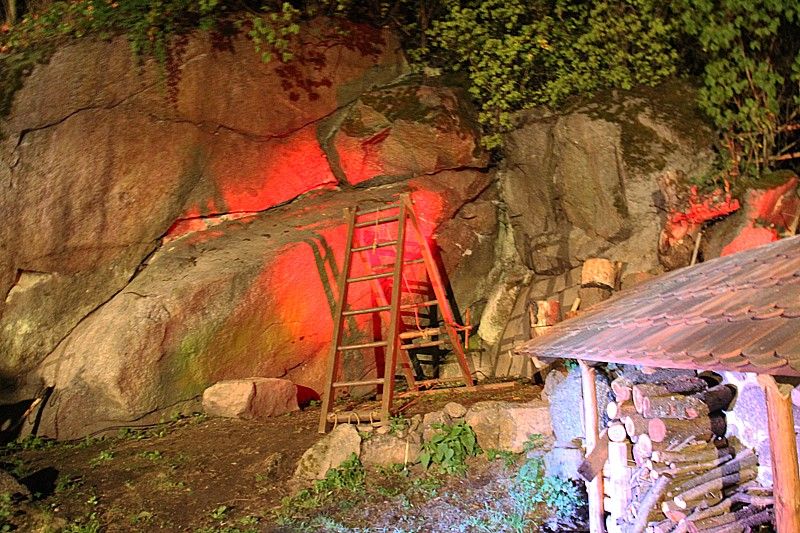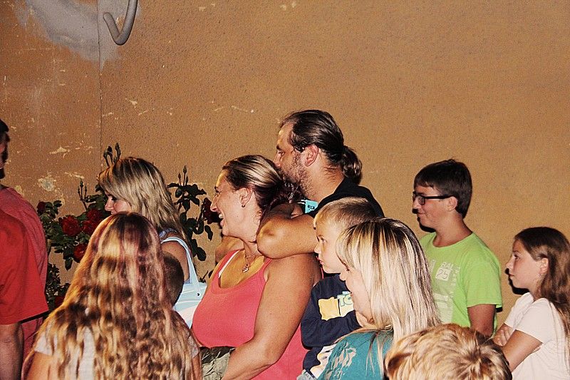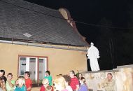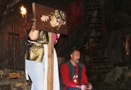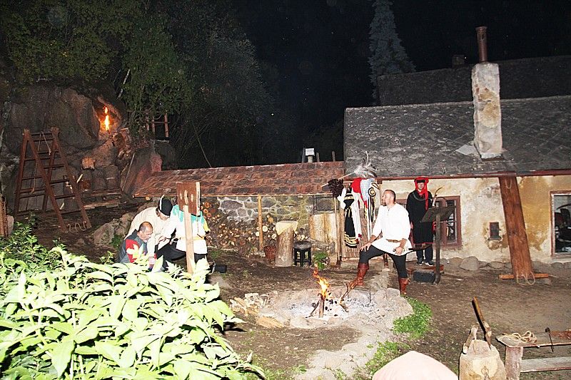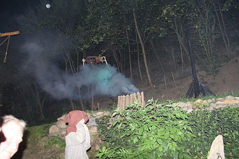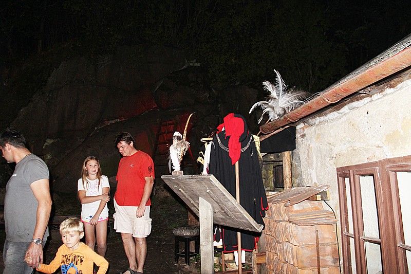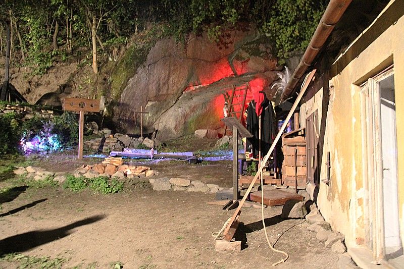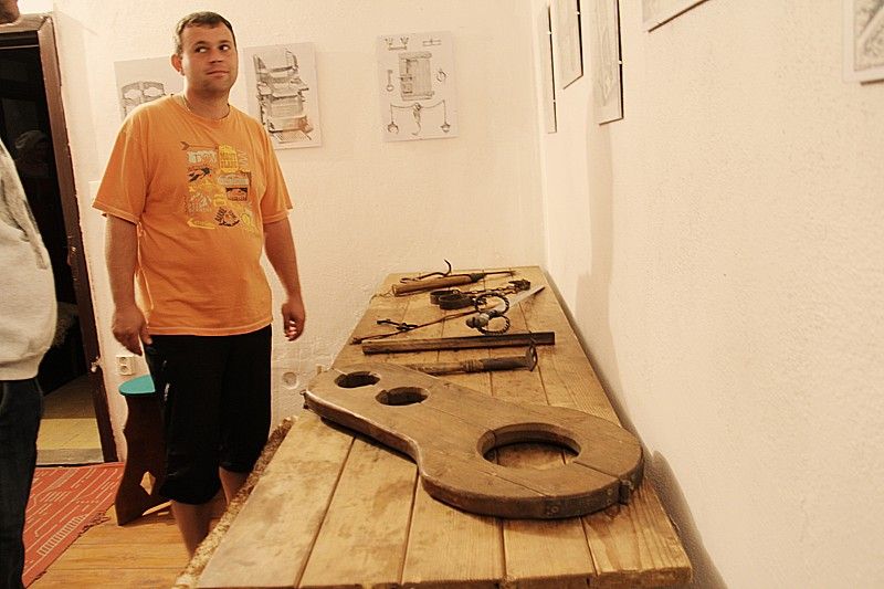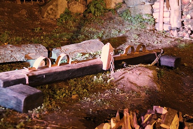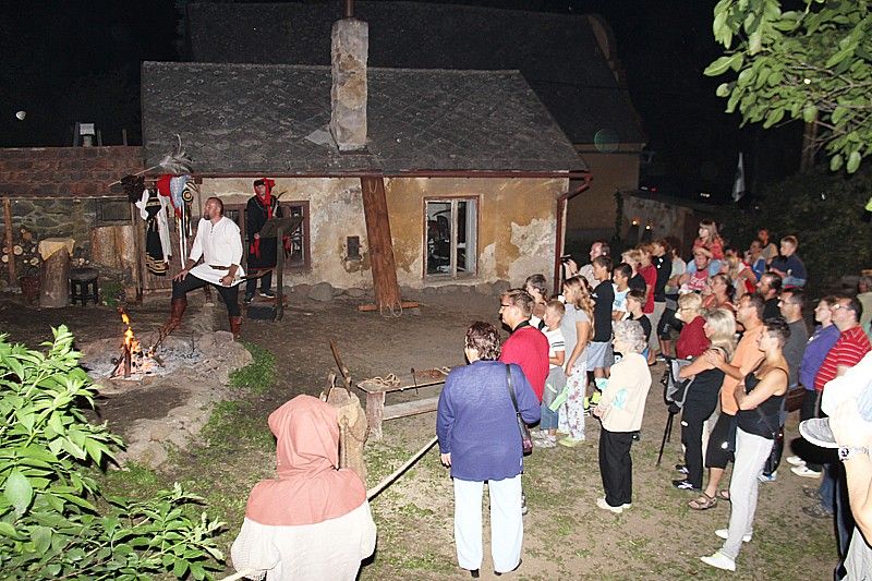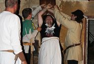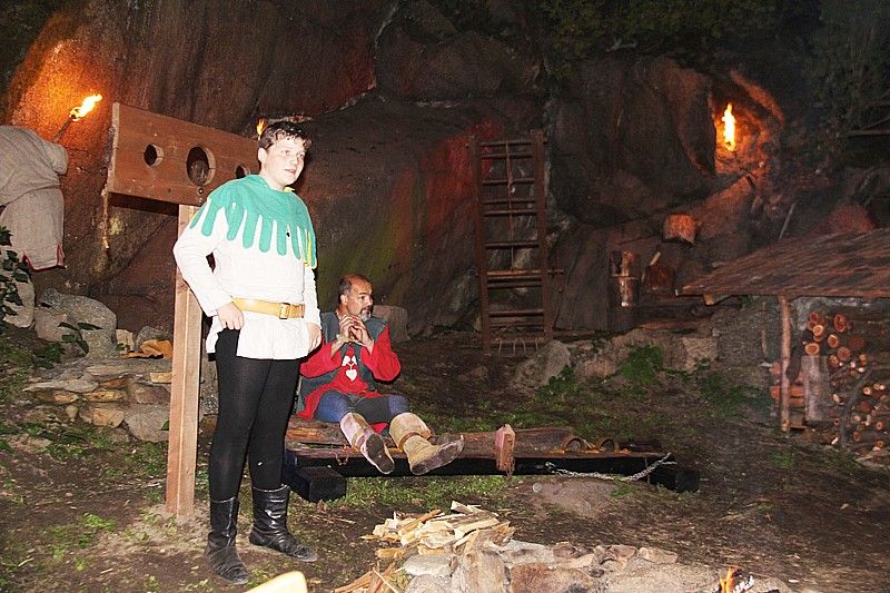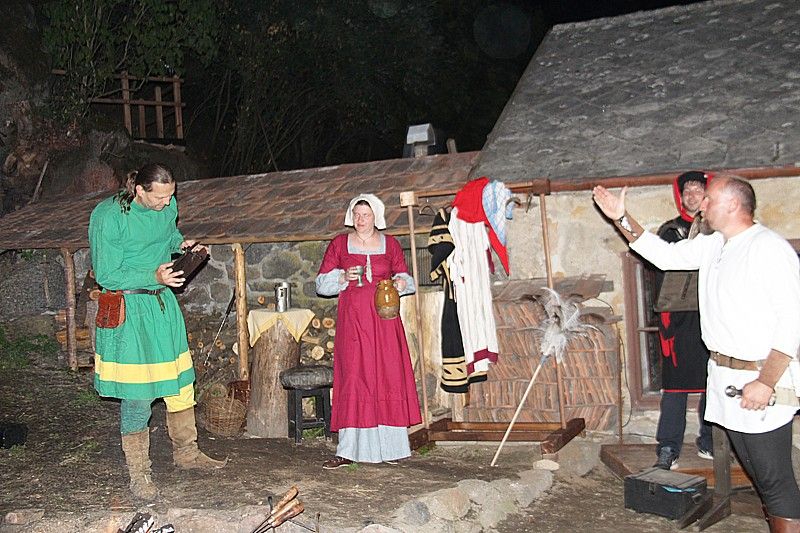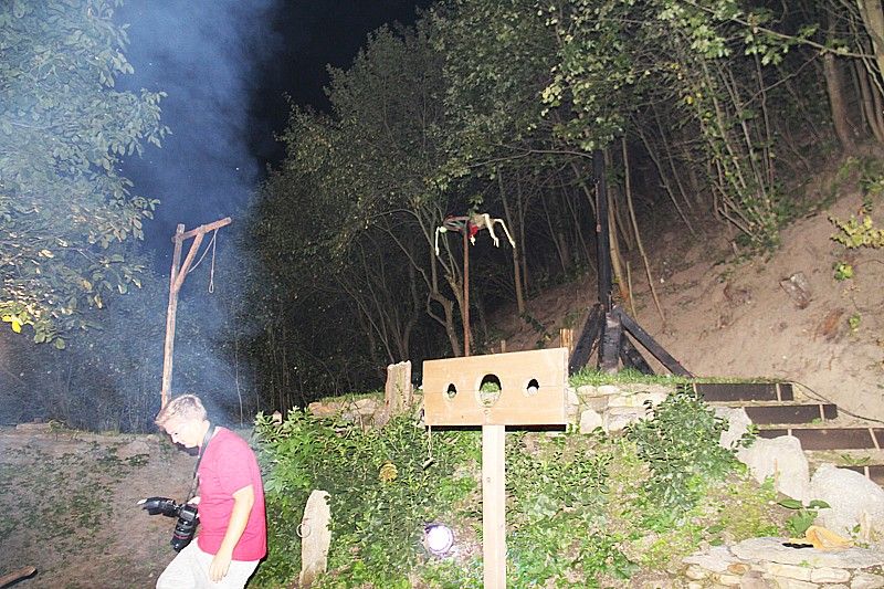 Venku pak na návštěvníky čekalo divadelní vystoupení s ukázkami mučení, do kterého byli vtaženi i tři přihlížející z řad diváků. Tentokrát se ve hraném příběhu o přepadení místní katovny méně šermovalo a bojovalo, ale více žertovalo, ještě více mučilo, ale nakonec všichni ze spárů kata vyvázli živí...