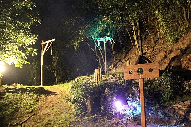Příchozí zájemci byli hned po vstupu pečlivě střeženou branou přivítáni a upozorněni na to, že se nacházejí na nebezpečné půdě... nicméně si mohli prohlédnout osvětlené prostory jak venkovní tak i vnitřní a zakoupit občerstvení. Od poslední veřejně přístupné prohlídky katovny, která byla v lednu v rámci dne otevřených dveří, přibyla v místnostech hlavně výstavka obrazů a předmětů s tematikou útrpného práva.