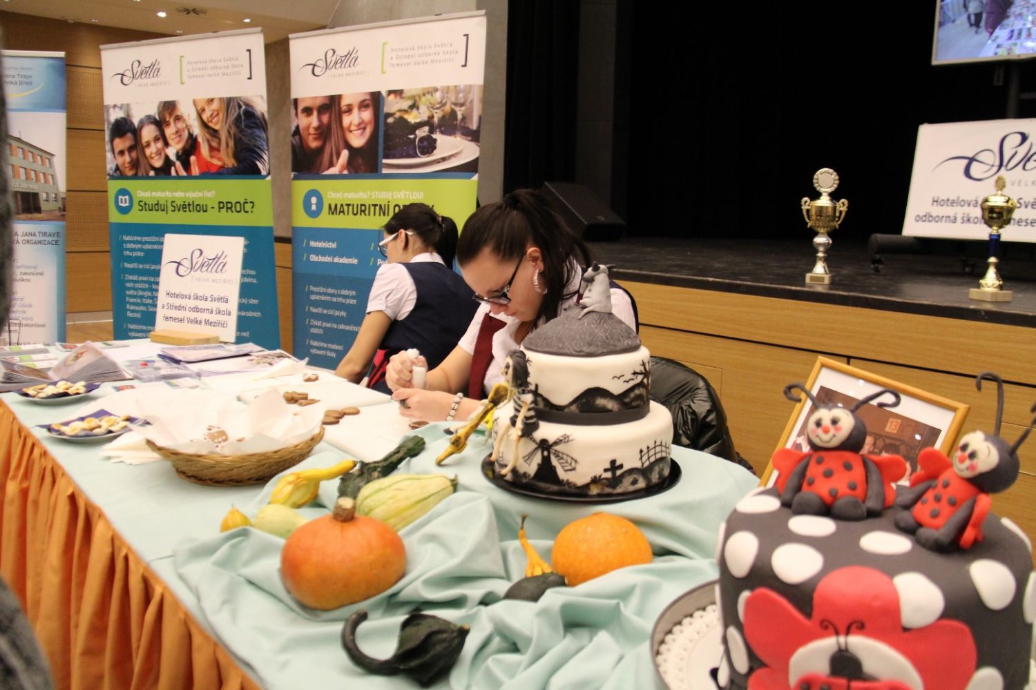 Všechny stánky prezentujících se středních škol nabízely svoje propagační materiály, ukázky výrobků, možnost získat informace o studiu nejen od učitelů, ale také od samotných žáků. Dívky ze Světlé například předváděly dovednosti v cukrářském oboru. K vidění byly dorty, zdobení perníčků. Inspirací pro chlapce zase byly ukázky práce elektrikářů, nebo mechaniků.
