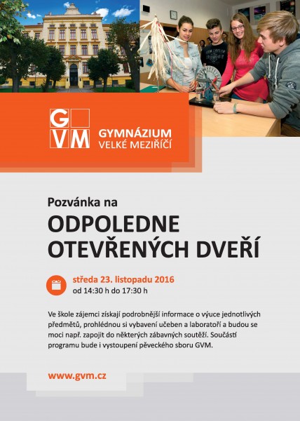 Zájemci ve škole získají podrobnější informace o výuce jednotlivých předmětů, prohlédnou si vybavení učeben, laboratoří a budou se moci zapojit do zábavných soutěží. Součástí programu bude i vystoupení pěveckého sboru GVM.
