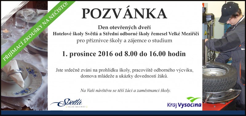 Velkomeziříčské gymnázium i Hotelová škola Světlá a SOŠ řemesel zvou všechny, zejména však zájemce o studium k návštěvě.