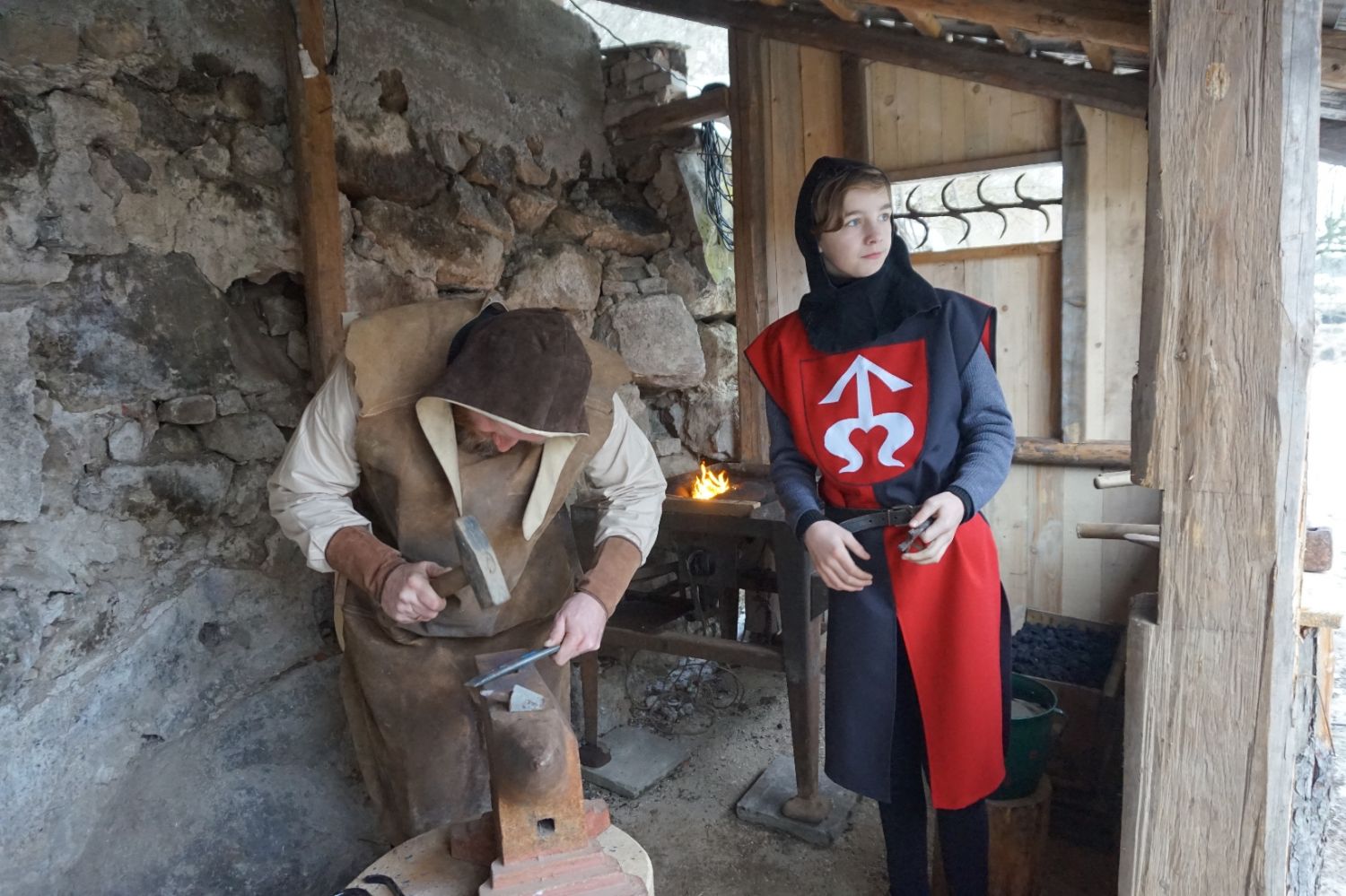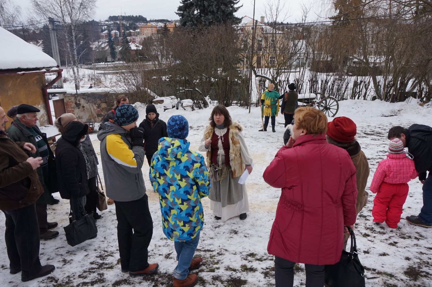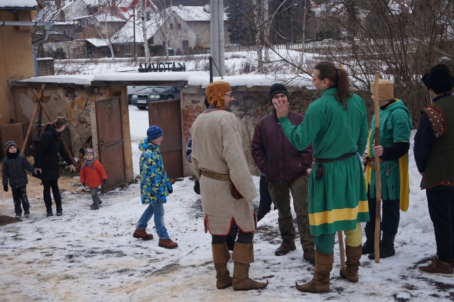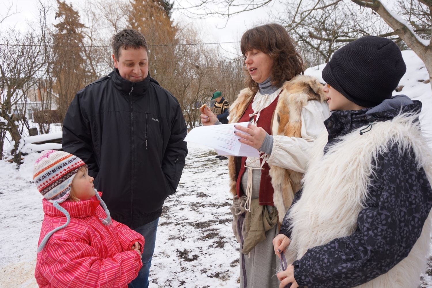 Připravili ho členové Společnosti historického šermu TAS, kteří nyní katovnu již druhým rokem užívají jako svoje zázemí. Lidé si prohlédli, co vše se v objektu od loňského prvního dne otevřených dveří změnilo. A že toho není toho málo. Přibyly třeba přístřešky na dřevo i pro kovárnu, v níž se kovář právě oháněl kladivem. Na dvoře voněly pochoutky, jimž mnozí neodolali a okoštovali třeba polévky, které se vařily venku v kotli nad ohněm prý dokonce dle středověké receptury. A navíc se ještě pobavili při vyprávění veskrze nešťastné ženštiny Johany, která se fakt blbě vdala za úředníka Martina. „On hrozně v práci ponížil, musel se státi písařem toliko krevním. Takže zapisuje do krevních knih, tedy popravčích,“ nastínila Ivana Vaňková v roli Johany osud těch, kteří možná před pár set lety katovnu obývali. A její manžel Martin, tedy Martin Štindl, pak popsal některá fakta ze života kata, či také rasa: „Kat nebo ras byli jedni z mála, kteří se mohli mrtvým zvířatům věnovat, protože zabít zvíře mimo porážku, to byl hazard s vlastní ctí. O tom by mohl vyprávět třeba Havel Kolenec z Meziříčí, který se v roce 1564 dostal do šlamastyky. Byl nařčen, že zabil psa, na cti ho to velice poškodilo.“ Zábavnému historickému výkladu lidé pozorně naslouchali a pak si mohli otestovat i vlastní vědomosti z dějin. Ivana Vaňková si pro ně totiž připravila čtrnáct záludných otázek a za správnou odměnu nabídla groš.