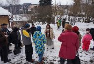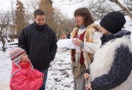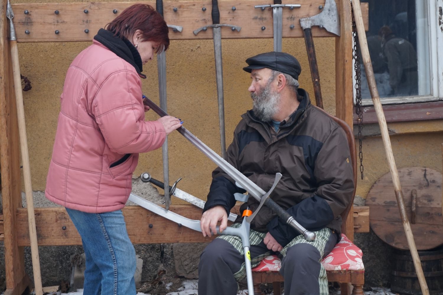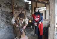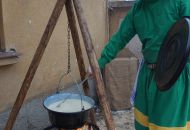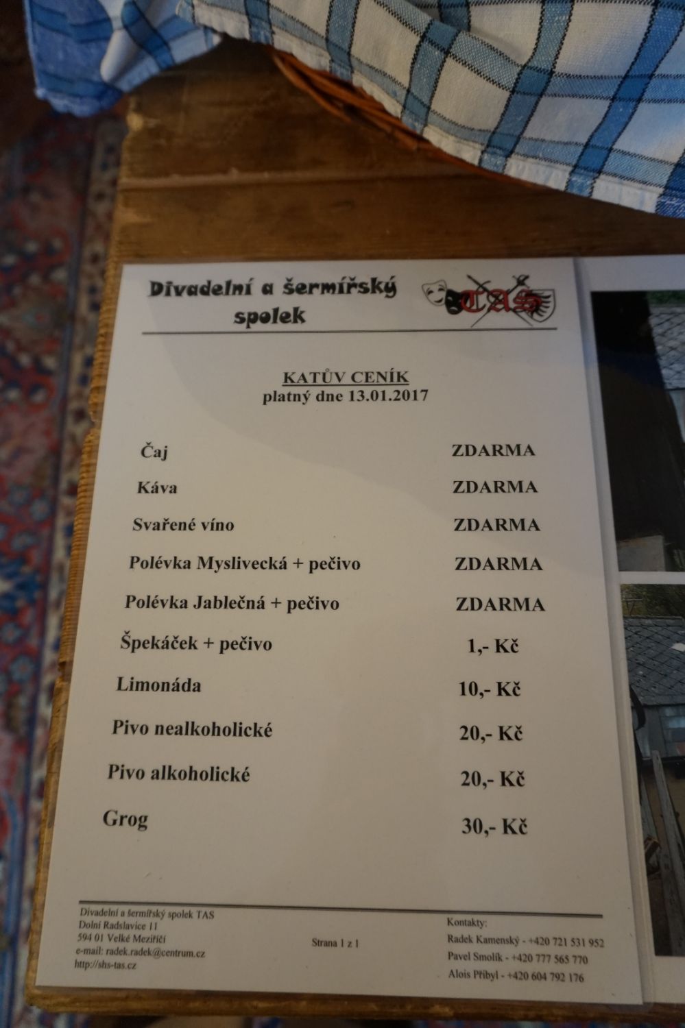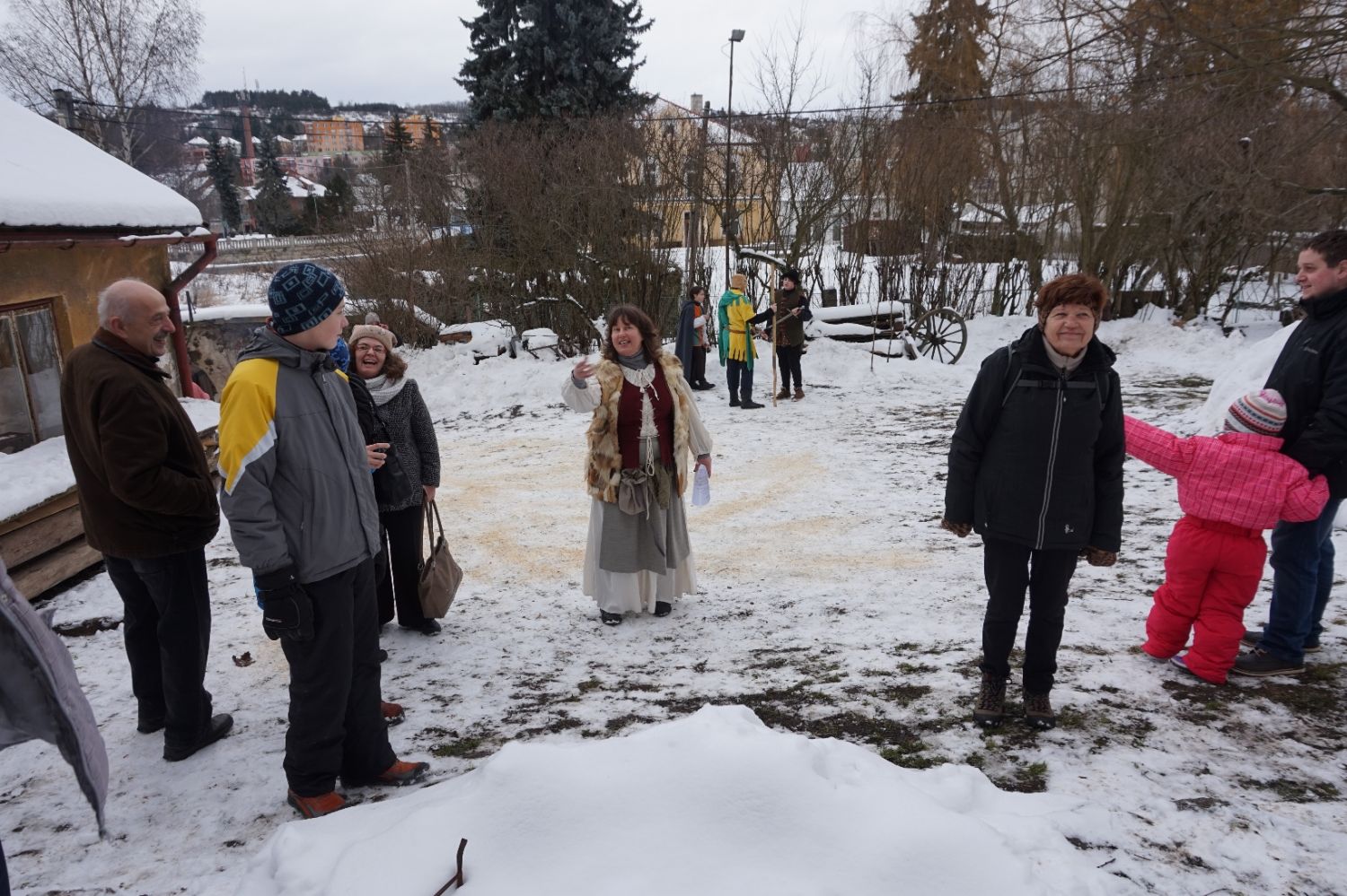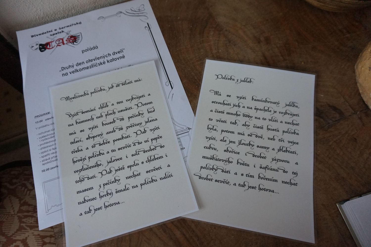 Připravili ho členové Společnosti historického šermu TAS, kteří nyní katovnu již druhým rokem užívají jako svoje zázemí. Lidé si prohlédli, co vše se v objektu od loňského prvního dne otevřených dveří změnilo. A že toho není toho málo. Přibyly třeba přístřešky na dřevo i pro kovárnu, v níž se kovář právě oháněl kladivem. Na dvoře voněly pochoutky, jimž mnozí neodolali a okoštovali třeba polévky, které se vařily venku v kotli nad ohněm prý dokonce dle středověké receptury. A navíc se ještě pobavili při vyprávění veskrze nešťastné ženštiny Johany, která se fakt blbě vdala za úředníka Martina. „On hrozně v práci ponížil, musel se státi písařem toliko krevním. Takže zapisuje do krevních knih, tedy popravčích,“ nastínila Ivana Vaňková v roli Johany osud těch, kteří možná před pár set lety katovnu obývali. A její manžel Martin, tedy Martin Štindl, pak popsal některá fakta ze života kata, či také rasa: „Kat nebo ras byli jedni z mála, kteří se mohli mrtvým zvířatům věnovat, protože zabít zvíře mimo porážku, to byl hazard s vlastní ctí. O tom by mohl vyprávět třeba Havel Kolenec z Meziříčí, který se v roce 1564 dostal do šlamastyky. Byl nařčen, že zabil psa, na cti ho to velice poškodilo.“ Zábavnému historickému výkladu lidé pozorně naslouchali a pak si mohli otestovat i vlastní vědomosti z dějin. Ivana Vaňková si pro ně totiž připravila čtrnáct záludných otázek a za správnou odměnu nabídla groš.
