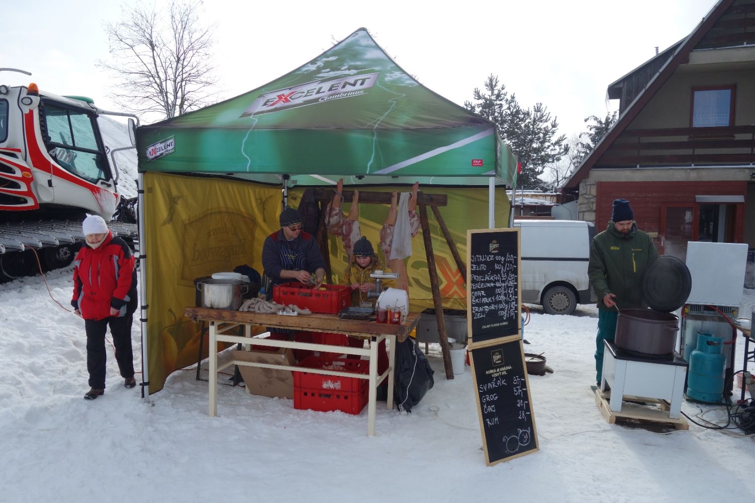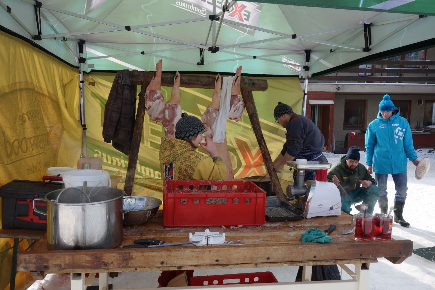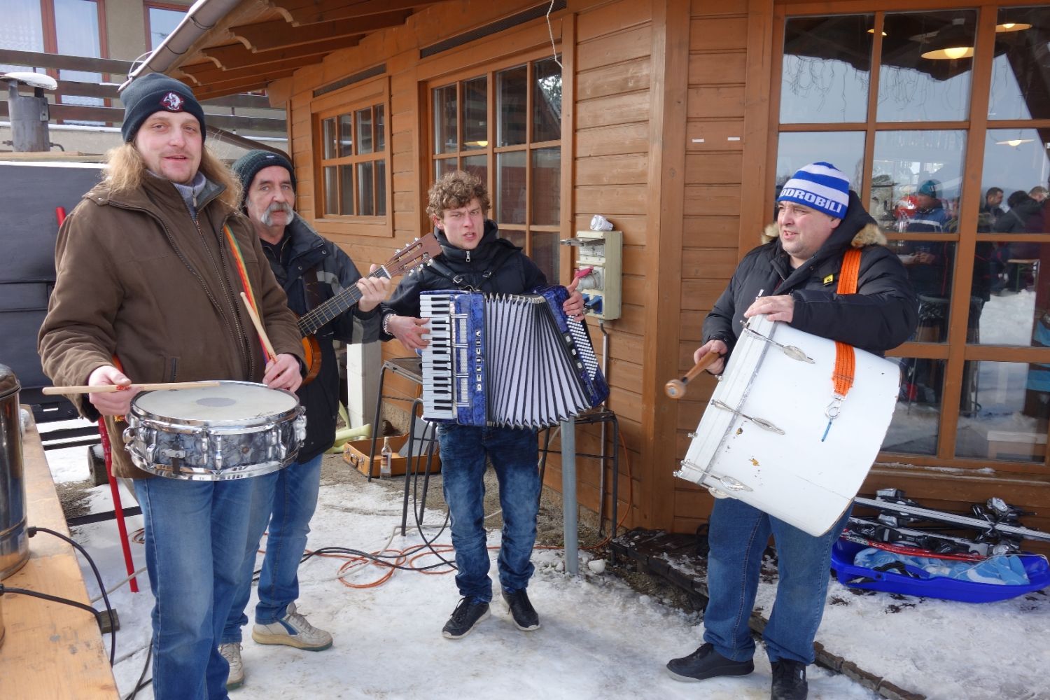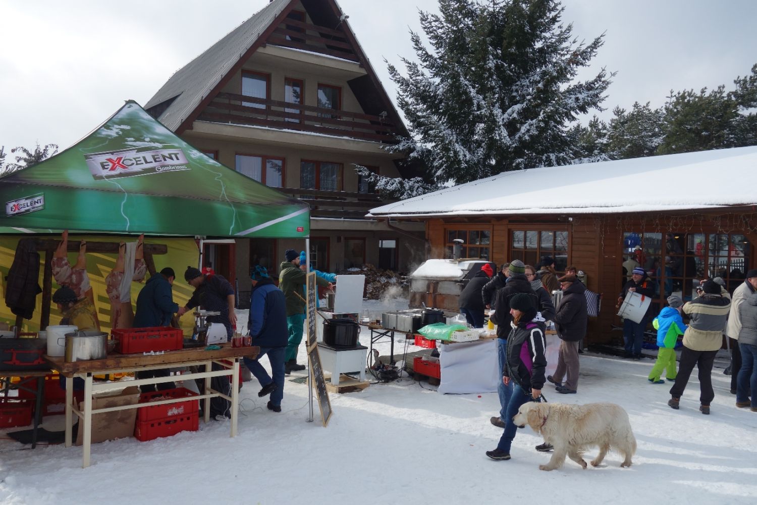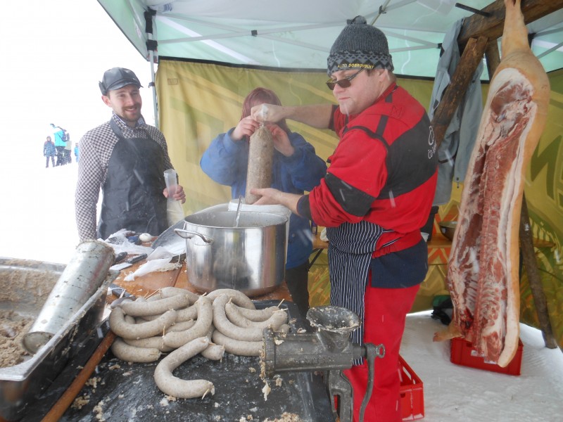 Lyžaři, účastníci lyžařské školy ale i ostatní návštěvníci si tak mohli užít tradiční akci, kterou Ski klub pořádá již kolikátým rokem. Před prodejním stánkem se neustále tvořila dlouhá fronta čekajících na produkty z rukou řezníka Františka Jurka. Bylo znát, že mají úspěch. K tomu hudba v podání lhotecké skupiny Žízeň a jako bonus sněžení. Prostě zabijačka se vším všudy.