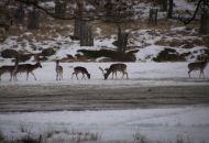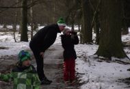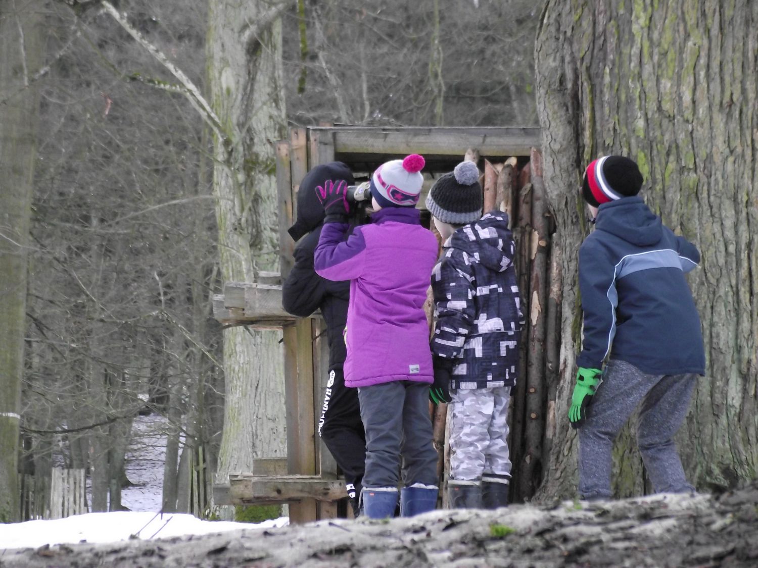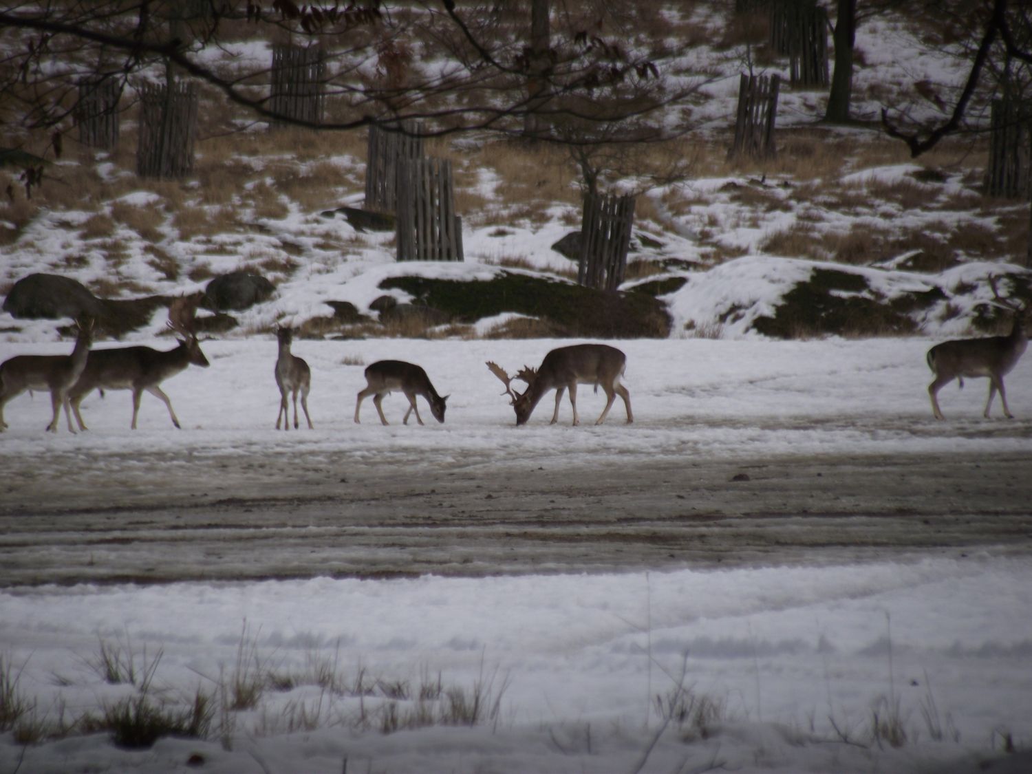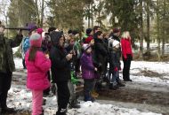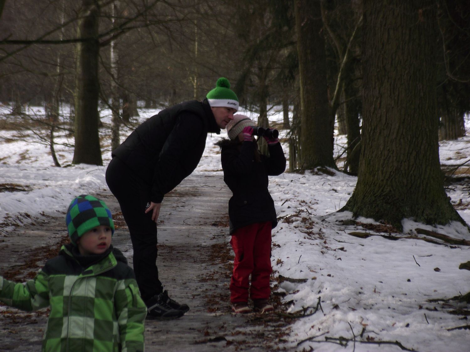 Po té se skupinka odebrala k prvnímu z celkem tří krmišt, které byly na trase. Letošní novinkou byl traktor, jel před účastníky a postupně zakrmoval. "Loni jsme šli na dvě skupinky a vzájemně si zvěř naháněli. S traktorem je to lepší, zvěř vidíme delší dobu, není tak plachá a hlavně sníh pozorování hodně pomáhá, vše je na něm dobře vidět," spokojeně podotkla Marie Štěpánková z městského úřadu. Zvířata, která jsou na zvuk motoru zvyklá, se postupně sbíhala a poměrně dlouho na krmišti pobyla. Všichni, i ti, kteří se na zledovělých cestách zdrželi, si tak mohli početná stáda důkladně prohlédnout. Děti se dobře bavily při pokusech dostat se ke zvěři co nejblíže schováváním za stromy. Prozkoumaly i krmná zařízení a závěrem byly odměněny lízátky a bonbonky.