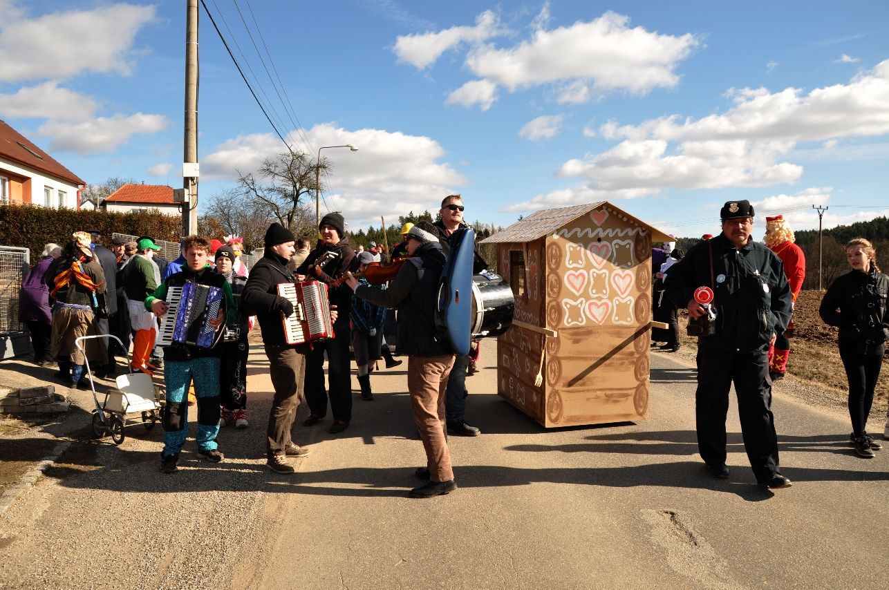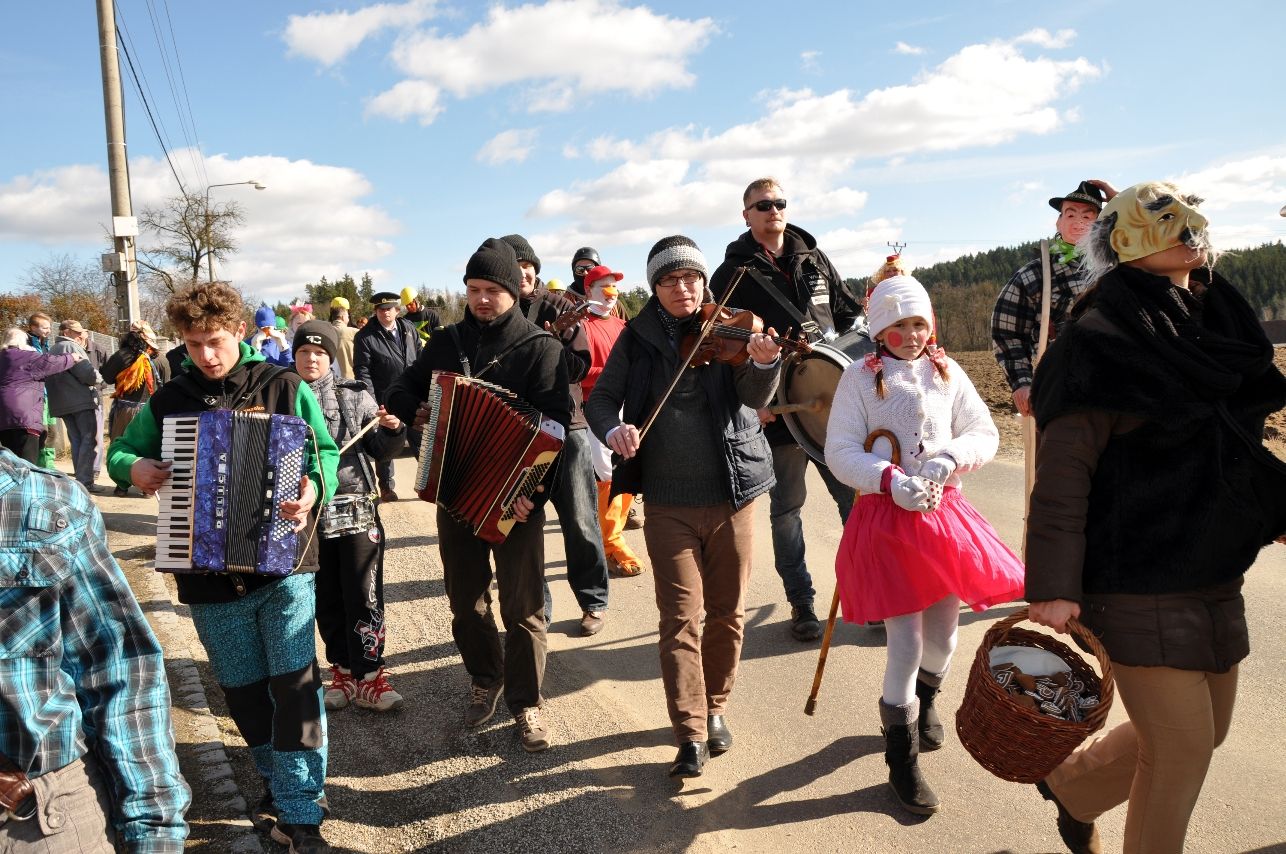 Masopustní veselí vrcholí. Maškary o víkendu prošly například i velkomeziříčskou místní částí Lhotky, Kúsky a Dolní Radslavice.