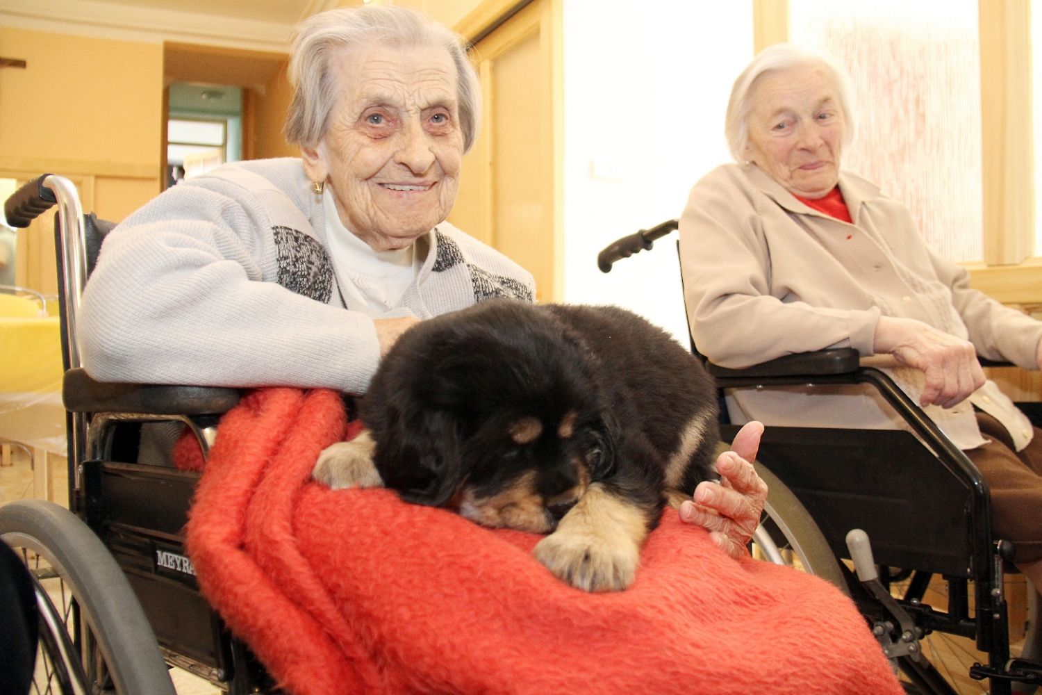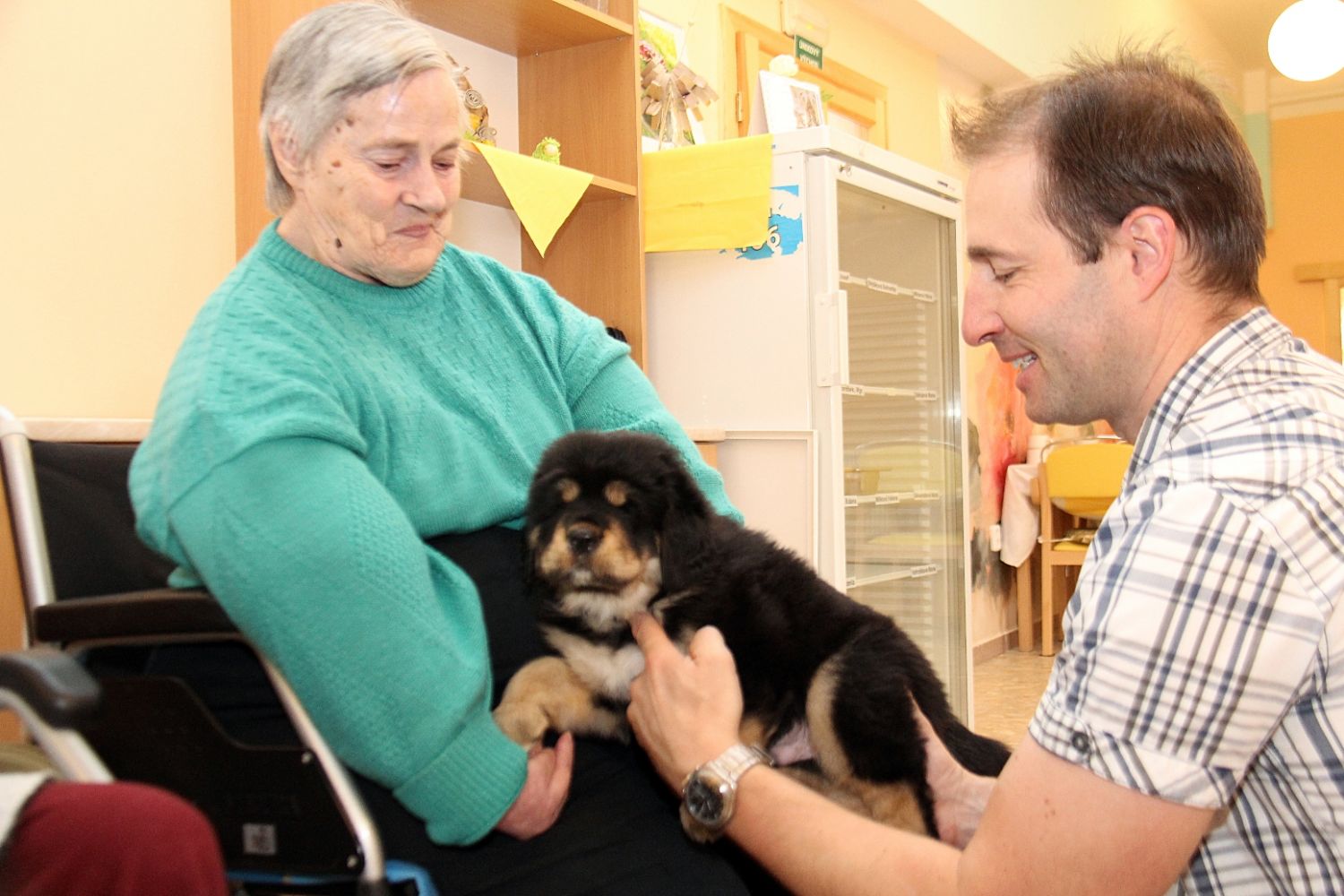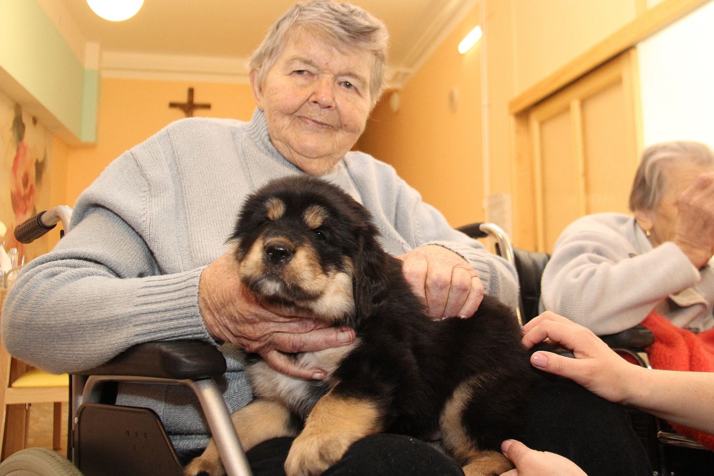 Velkomeziříčsko v únoru přineslo reportáž o tibetské doze Carrii a jejím majiteli Petru Ambrožovi z Martinic, který s ní jezdí dělat canisterapii do Charitního domova v Moravci. Teď vzal obyvatelům domova ukázat i její potomky.
