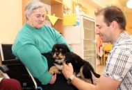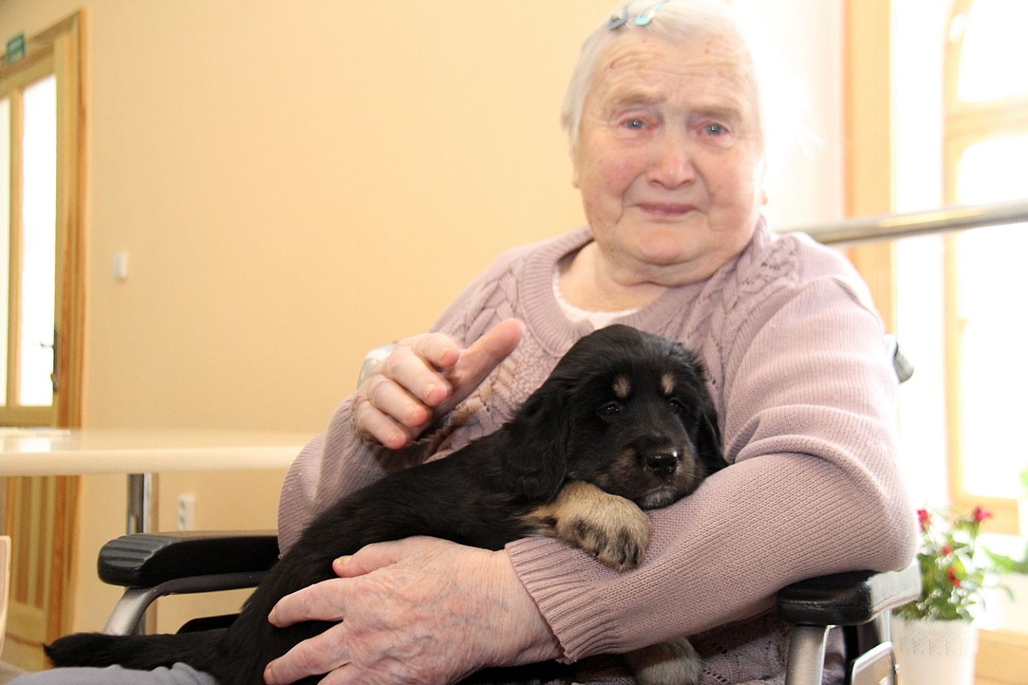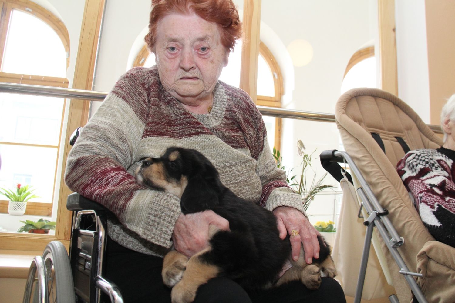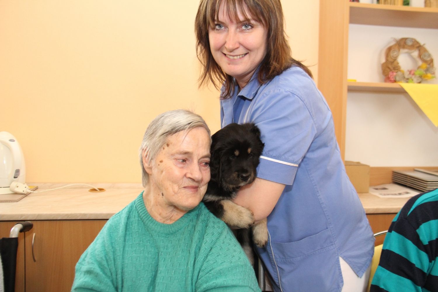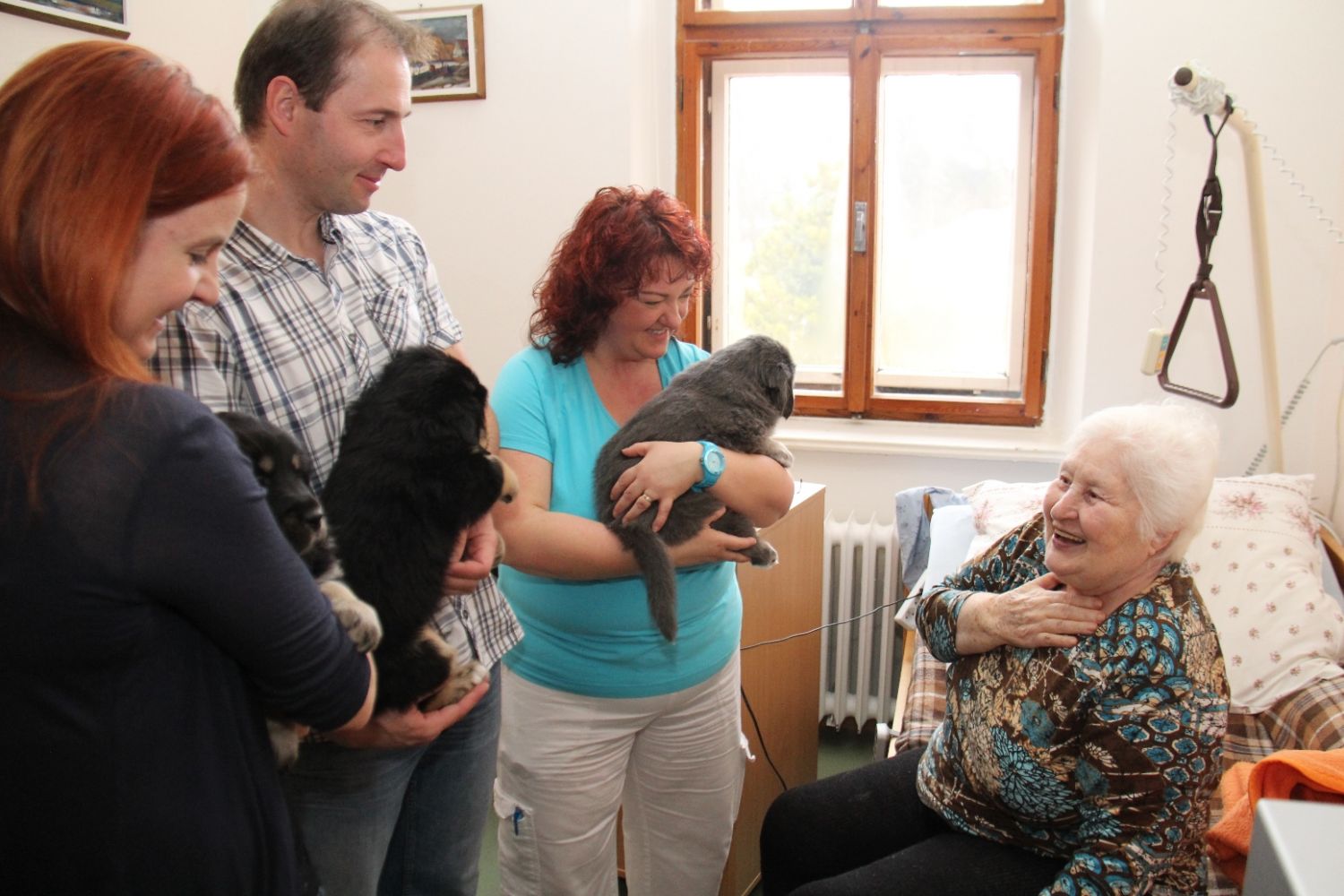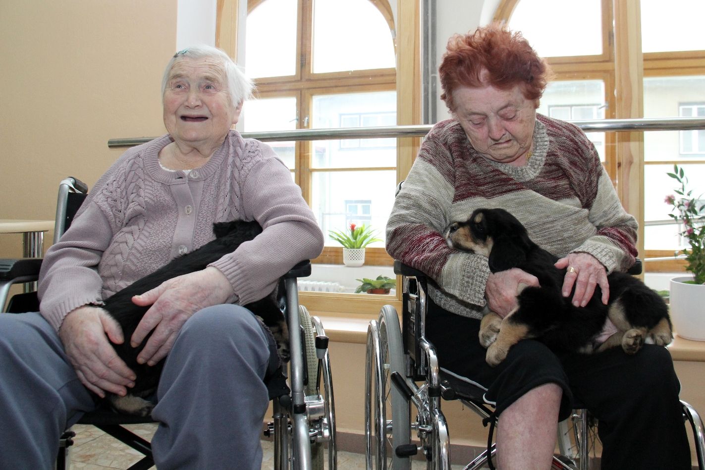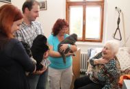 A to tedy potěšila, nejen obyvatele, ale i zaměstnance a děti z mateřské školy. Všichni už o návštěvě předem slyšeli. Takže se na tři vybraná štěňata sesypali první zájemci už na parkovišti před domovem, další pak na chodbě a všude. V prvé řadě se všichni ptali po Carrii. Ta ale tentokrát zůstala doma. Přijede za seniory do Moravce zase až po čase. Zato štěňata šla z ruky do ruky. Pro obyvatele byla milým zpestřením dne. "Moc vám děkuji, že jste mi štěňátka přivezli ukázat. Je to pro mě potěšení. Nemůžu se toho mazlení ani nabažit," shrnula pocity za všechny jedna ze seniorek.