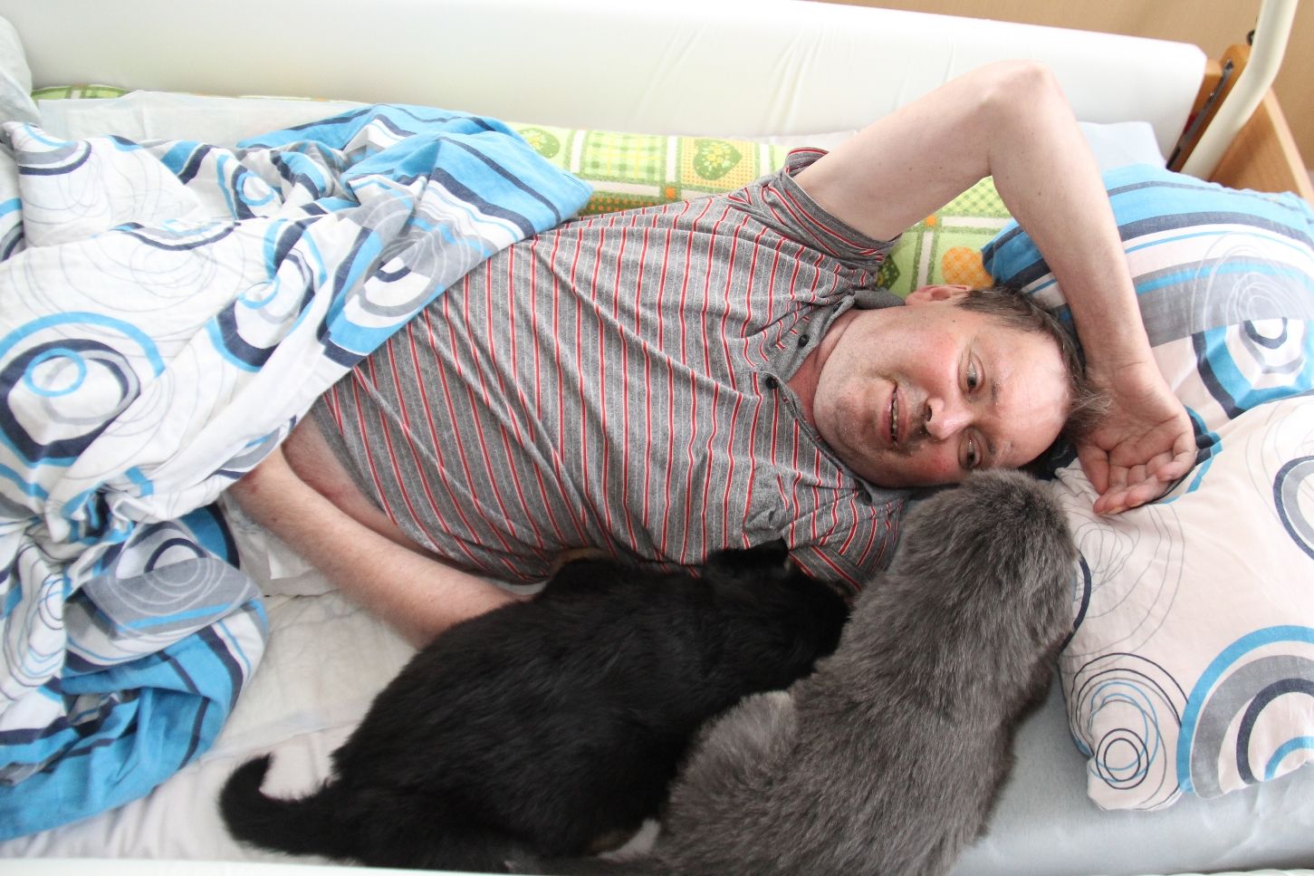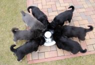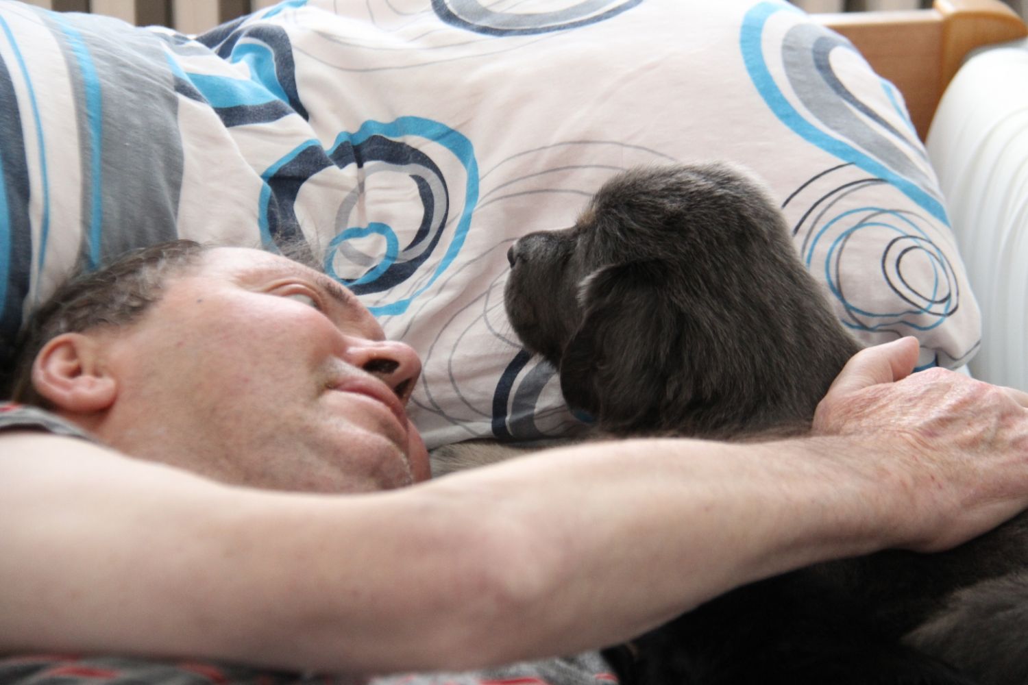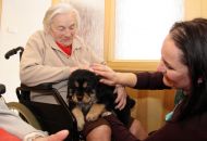 Reportáž o canisterapii v Moravci jsme připravovali před Vánoci, kdy se Carrie chystala na plnění svých mateřských povinností. Nyní se stará o sedm už víc než pětikilových štěňat – pět pejsků a dvě fenky. Narodila se v únoru a teď mají přes pět týdnů. Petr Ambrož důsledně dbá na jejich řádnou socializaci. Ví totiž, jak moc je zejména u tohoto plemene psa důležitá. Vždyť i díky ní fenka Carrie zvládla náročné zkoušky a může teď se svým majitelem canisterapii provozovat. „Je potřeba, aby se štěňata setkávala s cizími lidmi už odmala. Čím častěji, tím lépe pro ně,“ říká Petr Ambrož a dodává: „Snad naše návštěva potěší i obyvatele domova.“
