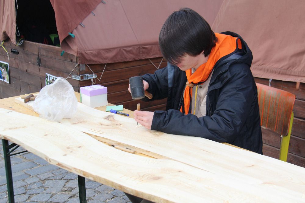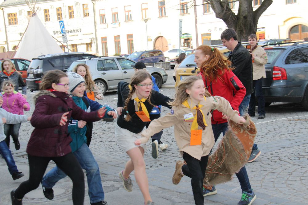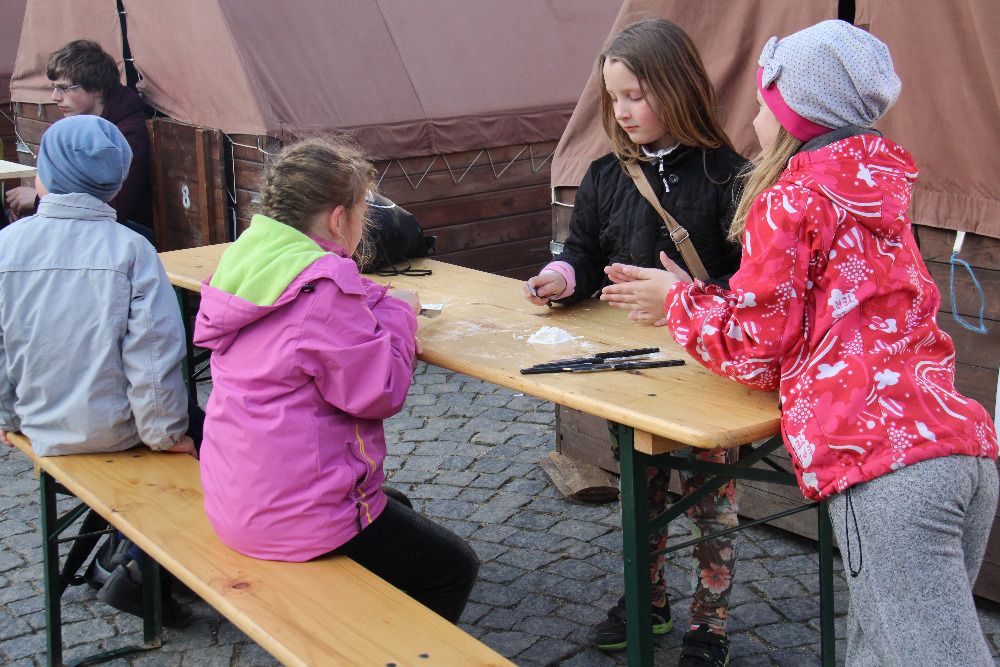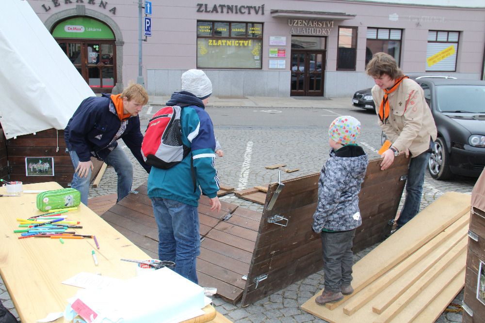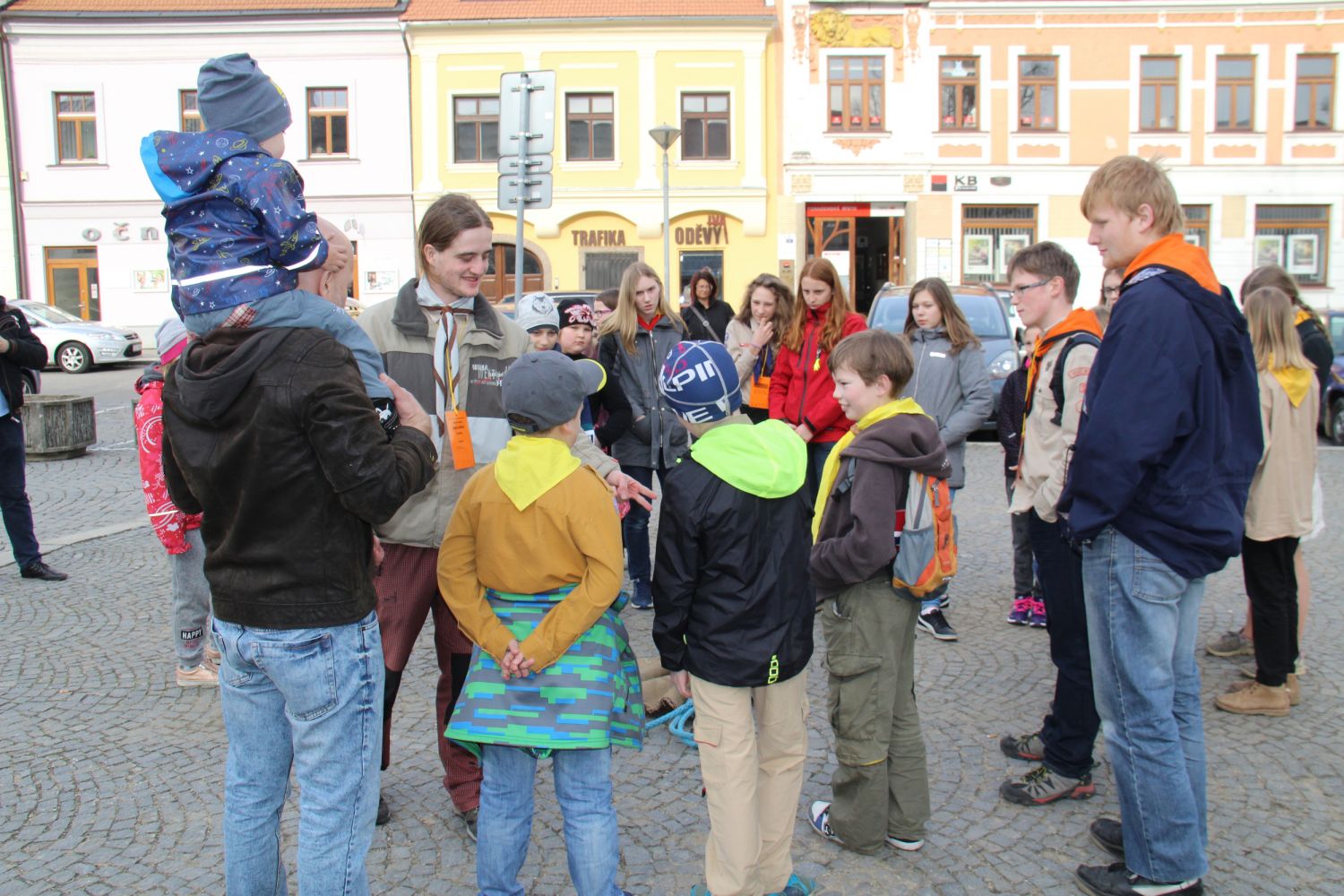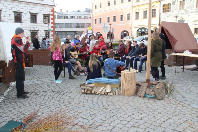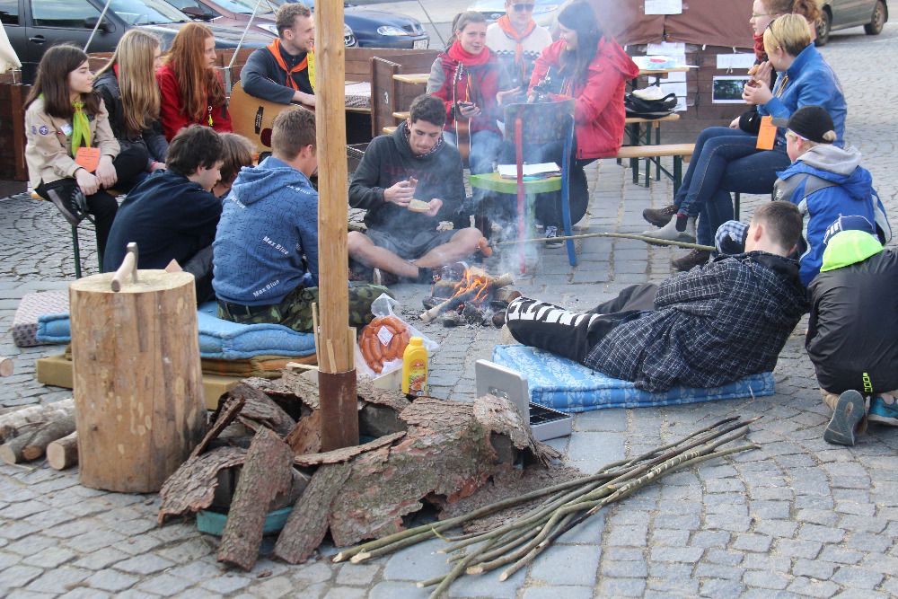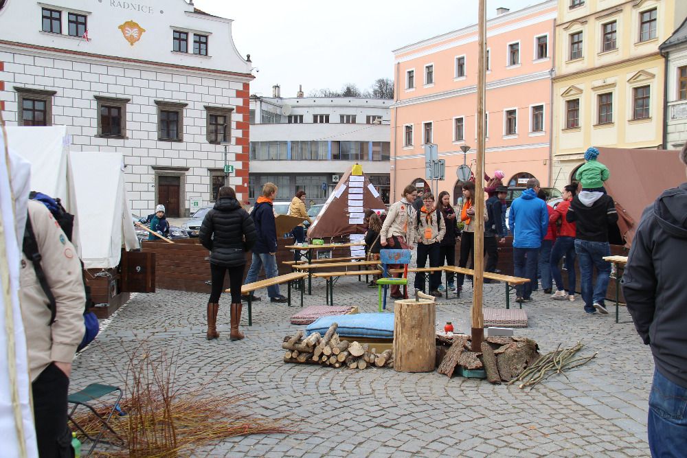 Pro veřejnost byla určena část programu na Náměstí. V dolní části byly postaveny stany a vztyčena vlajka. Ohniště nejen hřálo, ale opékaly se na něm špekáčky a zazněl i zpěv s kytarovým doprovodem. Pro děti byly přichystány hry, mohly si vyzkoušet postavit stan na čas.