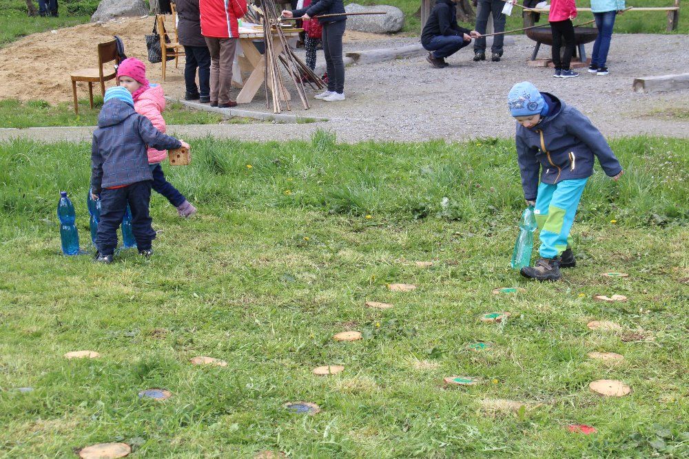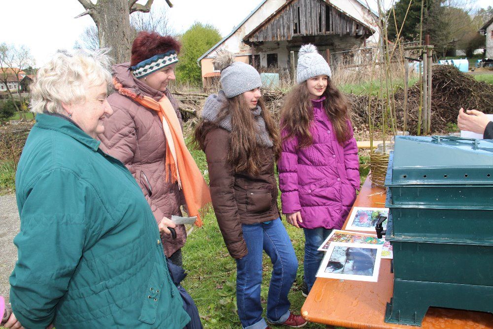 V zahradně terapeutickém areálu ekocentra pak byla připravena netradiční forma hry Člověče nezlob se. Políčka ležela v trávě a figurky tvořily naplněné pet láhve. Děti ocenily možnost odkrýt substrát a prohlédnout si žížaly v domácím vermikompostéru. Z něj lze odebrat hnojivo již po dvou, třech měsících a vyrobit se dá i z použitých kbelíků od barvy nebo umělohmotných, stohovatelných krabic. Závěrečné opékání špekáčků a hadů zahřálo žaludek i ruce.