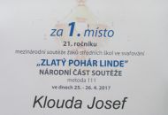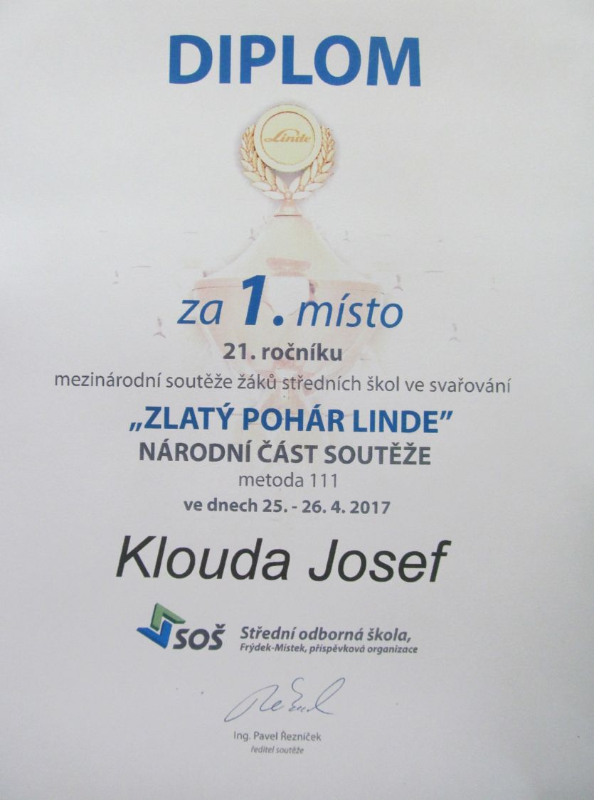 Naši školu reprezentoval žák 1. ročníku oboru vzdělání Podnikání Josef Klouda, pod dohledem učitele odborného výcviku Václava Crkala. Pepa soutěžil v metodě 111 – svařování elektrickým obloukem obalovanou elektrodou. Účastnil se jak národní, tak i mezinárodní soutěže V obou soutěžích obsadil vynikající 1. místo. V národní soutěži z 24 soutěžících a v mezinárodní ze 7 soutěžících.