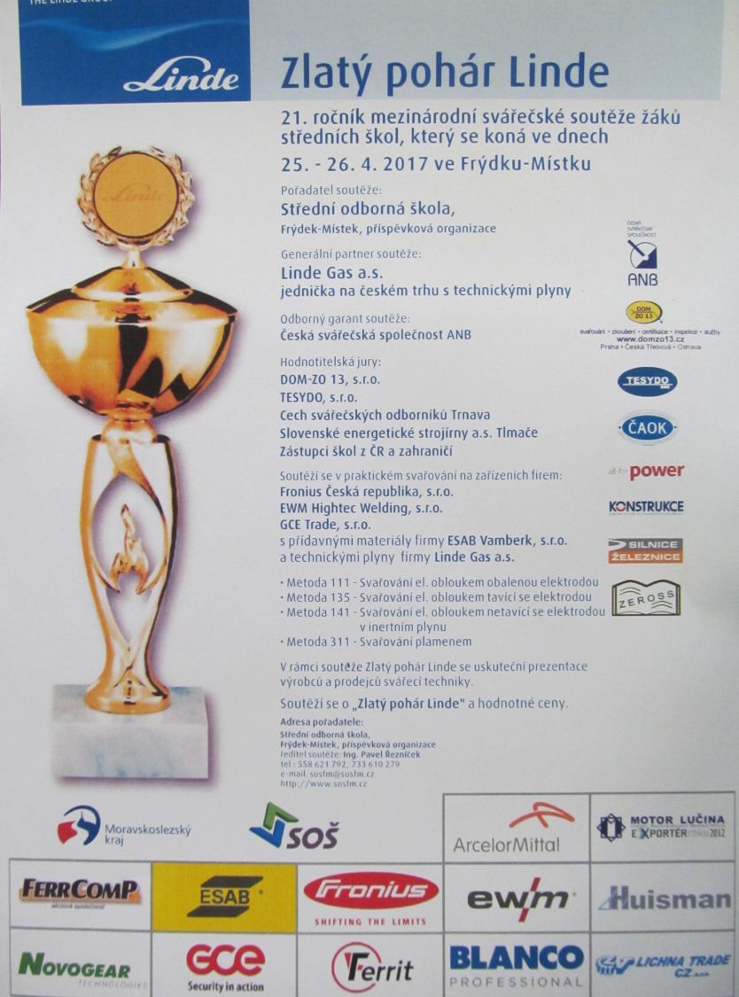 Ve dnech 25. až 26. 4. 2017 se žák Hotelové školy Světlá a Střední odborné školy řemesel Velké Meziříčí zúčastnil XXI. ročníku národní a mezinárodní soutěže žáků středních škol ve svařování pod názvem „Zlatý pohár Linde", která se uskutečnila v prostorách Střední odborné školy ve Frýdku-Místku. Na mezinárodní soutěži převládalo zastoupení soutěžících z České republiky, ale byli zde i žáci z Ukrajiny a Slovenské republiky.