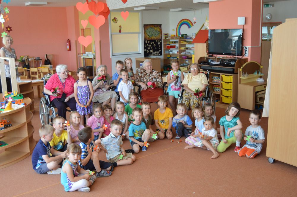 Ve čtvrtek 22. června se čtyři obyvatelky domova pro seniory vydaly v doprovodu pracovníků domova za dětmi z blízké mateřské školky Oslavická. Děti místní domov navštěvují poměrně pravidelně s připravenými besídkami, tanečky, básničkami či písničkami, a proto si tentokrát na oplátku připravily seniorky program pro ně.