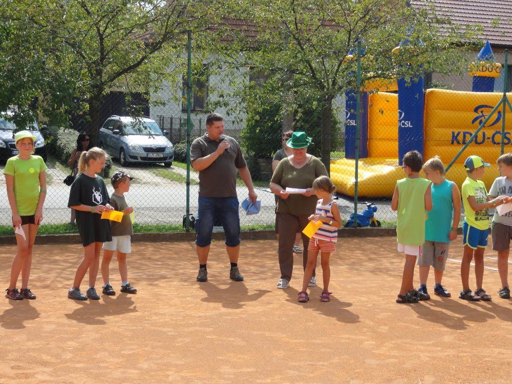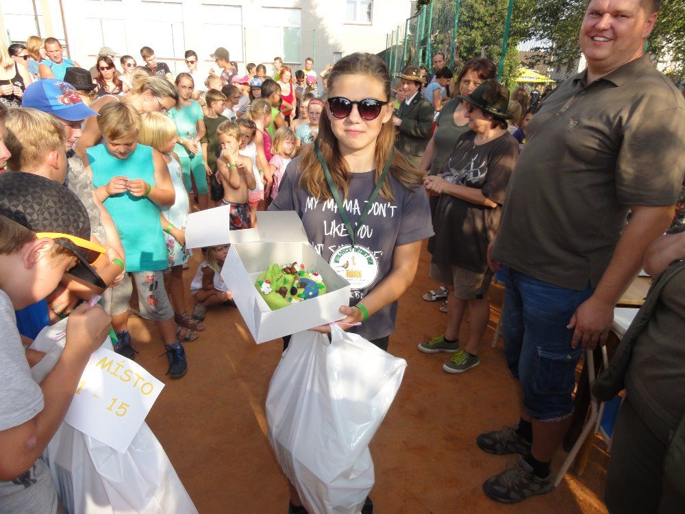 Poté přišla řada na vyhlášení výsledků v jednotlivých kategoriích. Díky velkému množství sponzorů byli odměněni nejen vítězové, ale vůbec všechny děti, které se akce zúčastnily a také rodiče, kteří nejlépe zvládli svoji soutěž. Výherci zlaté příčky v jednotlivých kategoriích si, jako každoročně, odnesli i nádherný dort. Poté se veškeré dění přesunulo na vystoupení dravců s komentovaným doprovodem. Volný čas trávily děti ve skákacím hradu. Vydařené odpoledne ukončil opět David Pavlas troubením na lesnici.