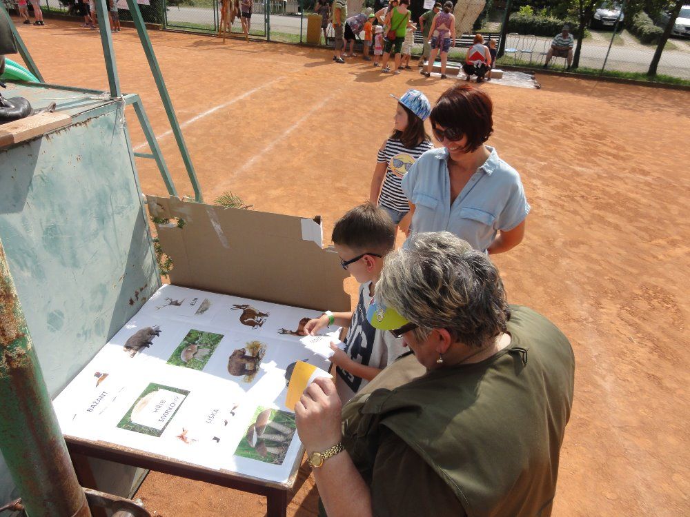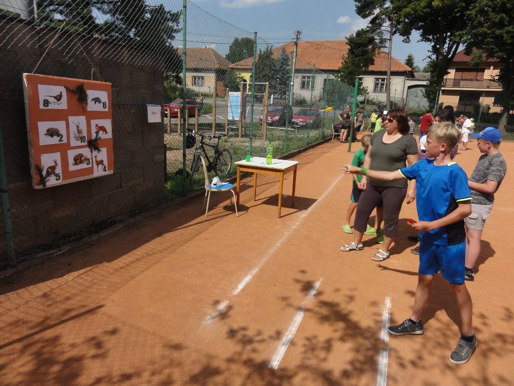 Malí soutěžící se po příchodu zapsali a dostali tak myslivecký lístek. Jako každoročně, tak i letos, se mohl každý zapojit do soutěže v kreslení. O zahájení se velmi stylově postaral David Pavlas, který zatroubil na lesnici. A potom už na děti čekaly různé disciplíny s lesní a mysliveckou tematikou. Mezi jinými to bylo trefování se míčkem do papírového divočáka, třídění barevných soviček a muchomůrek se šiškami, poznávání lesních zvířat a hub, házení šiškou na cíl, třídění odpadu do správných kontejnerů, chytání myší a podobně. Ani letos nechybělo oblíbené střílení vzduchovkou na terč pod dohledem místních hasičů. Také tentokrát se mohli do soutěžení zapojit rodiče, kteří si vyzkoušeli správnou trefu při hodu míčkem do různě velkých nádob. V průběhu odpoledne byla možnost zhlédnout ukázku výcviku psa. Počasí nám opravdu přálo a všichni jsme si mohli užít předposlední prázdninovou sobotu jak se patří. Pro všechny bylo připraveno výtečné rychlé občerstvení v podobě párku s chlebem nebo oblíbených bramborových hranolek s kečupem. Příjemným osvěžením byla i zmrzlina, kterou všichni soutěžící dostali.