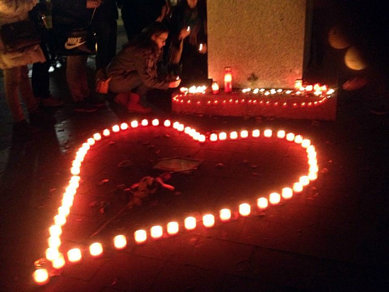 Průvod Moráňskou na Náměstí, shromáždění na Náměstí u lípy Svobody, krátký proslov, položení květin a rozsvícení svíček.