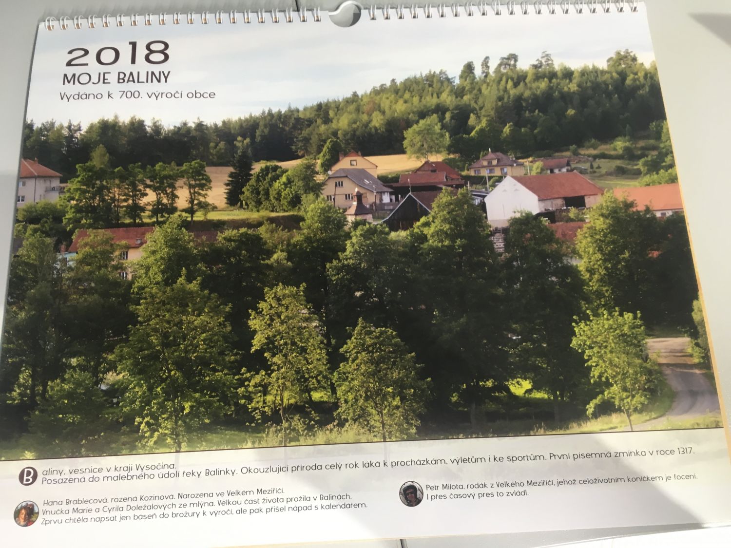 V sobotu 18. listopadu se v kulturním domě v Balinách uskutečnil křest nového kalendáře Moje Baliny 2018. Křest byl další akcí v řadě oslav významného výročí 700 let vzniku obce.