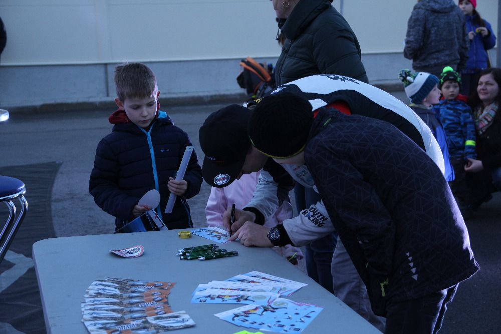 Mezi častými otázkami zaznělo, zda se jezdci něčeho bojí. „Mou noční můrou je, že závod skončí hned první den. A nebezpečné jsou na cestě třeba duny, jednu jsme kdysi přejížděli hodinu,“ odpověděl Tomáš Ouředníček. Otázky padaly i pitnému režimu nebo když se auto zahrabe. „Je dost složité se do auta dostat, takže jsme raději, když ven vůbec nemusíme,“ s úsměvem podotkl pilot Ouředníček. Nečekaný, ale příjemný rozhovor proběhl se zpěvákem Petrem Jandou, který se na ploše objevil. „Pro mě to není. Ale k Lopraisovi mám velkou úctu, ten je famózní. Závod v televizi sleduju, obdivuju velký auta i závodníky na motorkách, sedí na nich jako vosa na bonbonu, a přitom jedou šílenou rychlostí,“ podělil se o svůj pohled na Dakar známý muzikant.