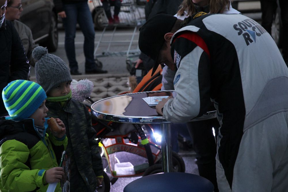 Dnes, den před odjezdem do francouzského přístavu Le Havre, umožnil svým fanouškům a příznivcům automobilových závodů Tomáš Ouředníček prohlédnout si pěkně zblízka speciál Ford Ranger. Malí i velcí tak mohli nahlédnout pod kapotu, vyzkoušet si, jak je složité nasednout, zejména na místo řidiče, vyptat se jezdců na technické i organizační detaily a odnést si autogram.
