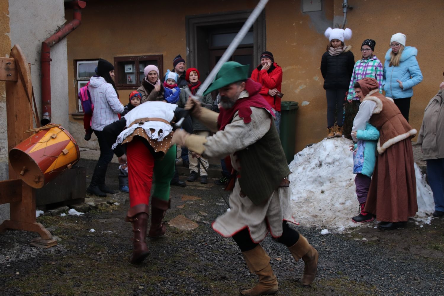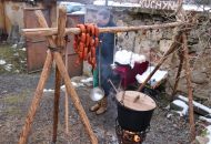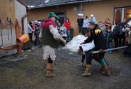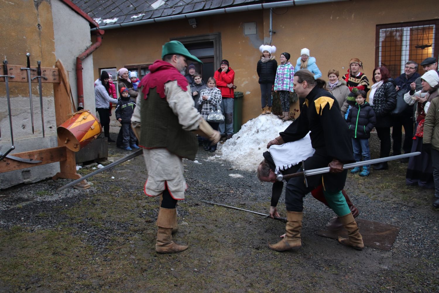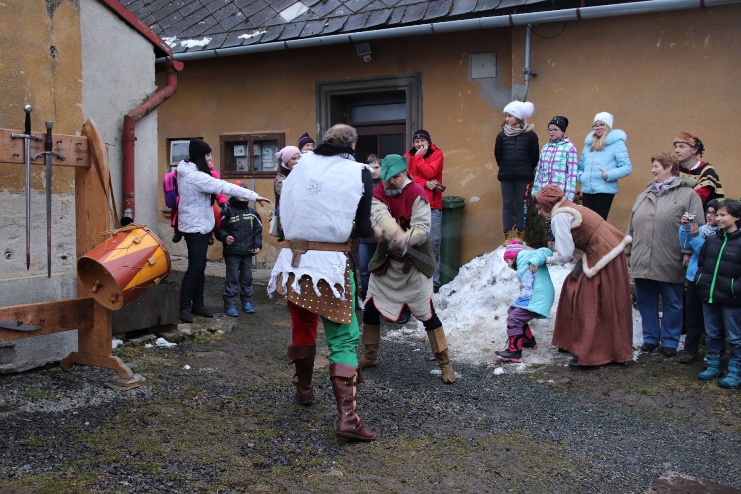 A až se na všechno zeptali, leccos si osahali a mnohé ochutnali, už je zpátky ven lákalo řinčení zbraní. Šermíři totiž právě polapili zloděje, kterého čekal soud. Takže v pátek odpoledne v katovně rozhodně o zábavu nouze nebyla. Dvorkem voněl rasův guláš, kterému nebylo možno odolat, tím spíš, když prý byl ze srnky, nikoli ze psa. A komu to nestačilo, dostal do ruky špekáček, vidlici na napíchnutí a mohl se pustit do opékání. A to veškeré dobroty připravili členové Tasu návštěvníkům zdarma.