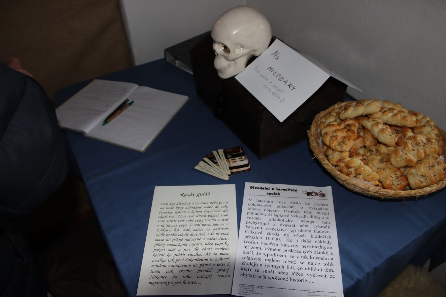 Co baví jejího muže, krevního písaře Martina, tedy ve skutečnosti Martina Štindla, zjistili lidé hned poté, co postoupili do budovy katovny. Přivítalo je příjemné teplo z kamen, vůně svařeného vína, kávy nebo čaje a spousty pochoutek. A Martin jim představil svoji sbírku středověkých mučicích nástrojů. Mnohé z nich si mohli vyzkoušet na svém těle a přitom se dozvěděli mnohé zajímavosti pojící se s hrdelním právem.