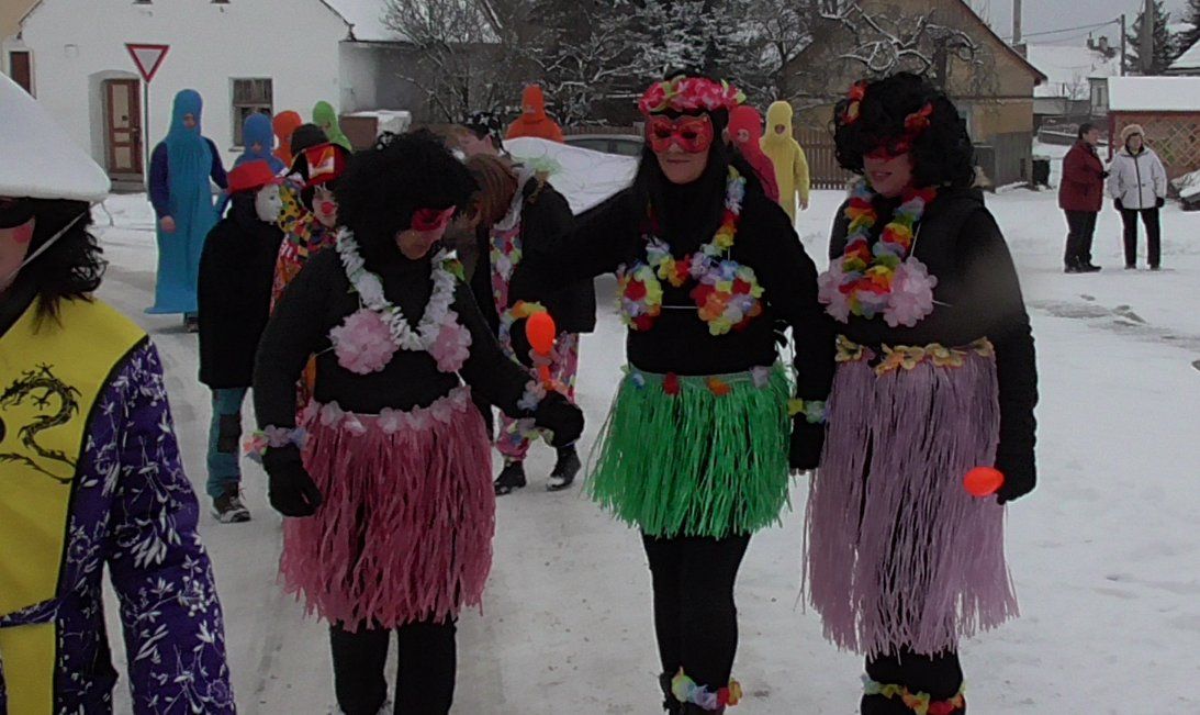 Tradičně dobrá nálada, 40 masek, 10 muzikantů a hasičů. Podle krokoměru cca 14 kilometrů a okolo 20 000 kroků po vesnici.