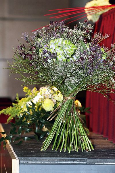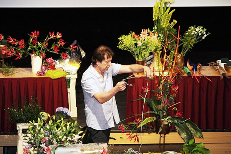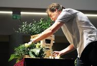 Přední český florista Bohuslav Rabušic zavítal ve středu 3. 6. do Velkého Meziříčí. V doprovodné akci Evropského filozofického festivalu známý aranžér během hodiny a půl stihl navázat sedm velkých kytic na zadané téma Konflikt a soulad. To je totiž hlavním tématem nadcházejícího filozofického festivalu, který bude probíhat od 4. do 10. června v našem městě. „Floristé konflikt mezi květinami nemají rádi, musí se držet toho, jak se jednotlivé květiny snesou. Konflikt lze tedy řešit prostorovým (technickým) uspořádáním vazby, volbou výraznějších barev, použitím vhodného doplňkového materiálu (stuhy, kovové předměty, vázací dráty apod.). Tyto avantgardní vazby jsou vhodné do moderního interiéru, např. inspirovaného funkcionalismem,“ komentoval Rabušic hned v úvodu zadaný námět. „Naproti tomu soulad je žádoucí v tradičních interiérech, jako jsou zámecké prostory, měšťanské salony, vily a jiné,“ doplnil pak svoji úvahu. Právě zámecké prostory jsou častým místem, kde floristé tvoří svá překrásná díla. Na ukázku dalších květinových vazeb pozval Rabušic přítomné návštěvníky na zámek v Náměšti nad Oslavou, kde proběhne jeho následující prezentace, a to v neděli 7. 6. 2015 ve 14 hodin.