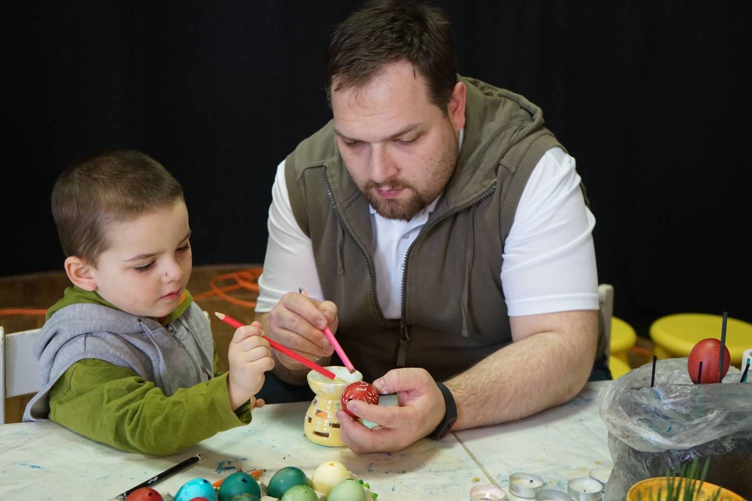 Na pódiu se tvořilo. Zájemci si mohli nazdobit věnec či srdce z proutí, děti zdobily kraslice voskem. Pod jevištěm si pak nejen mužští návštěvníci pletli pomlázky. K mání tu byly také nejrůznější rukodělné výrobky, ať už šlo o osení, keramiku, košíky, perníčky, oleje, textil, šperky či hračky.
