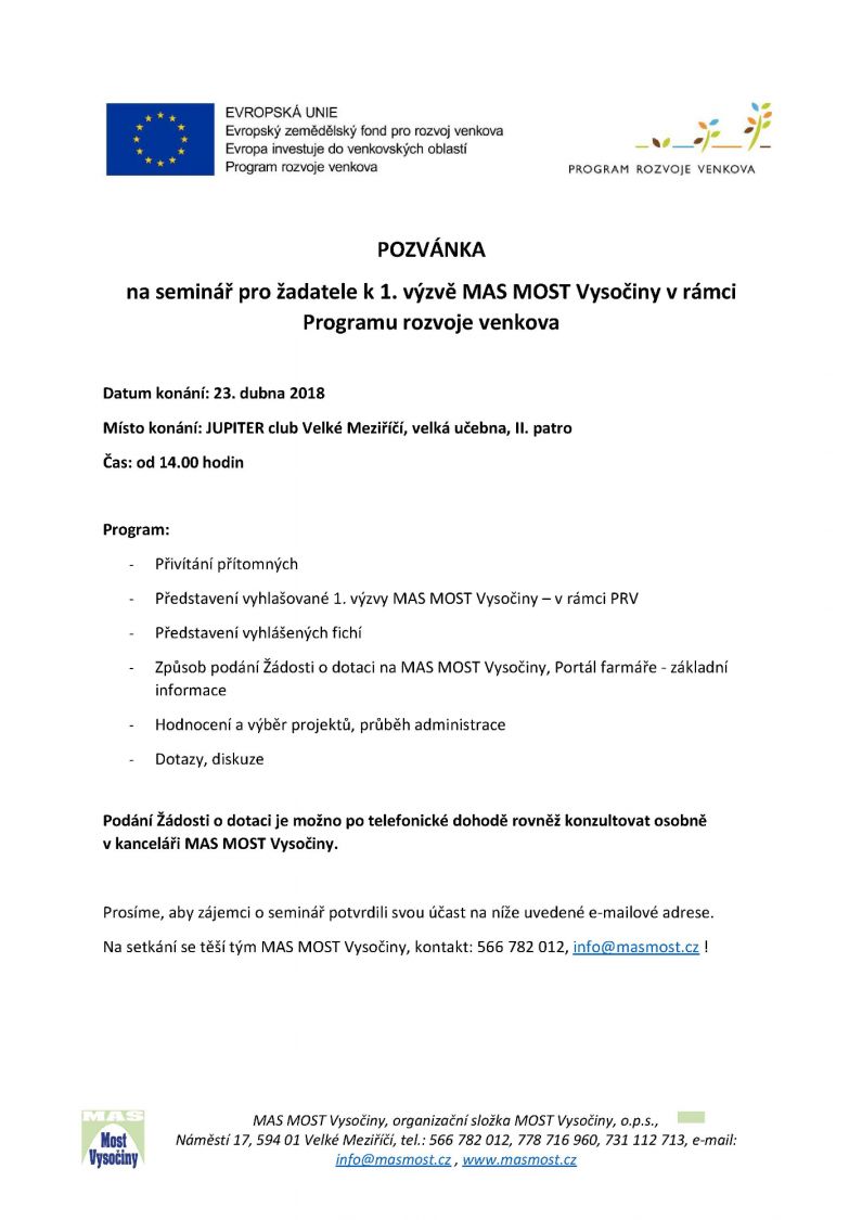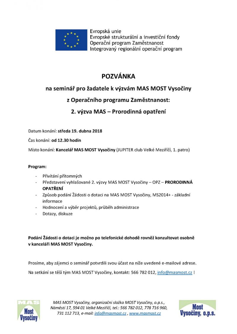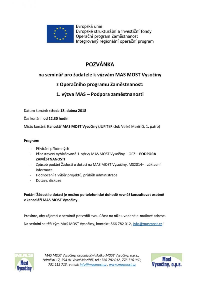 Místní akční skupina MOST Vysočiny zve zájemce z řad žadatelů v Operačním programu Zaměstnanost a Programu rozvoje venkova na semináře konané k vyhlášeným výzvám.