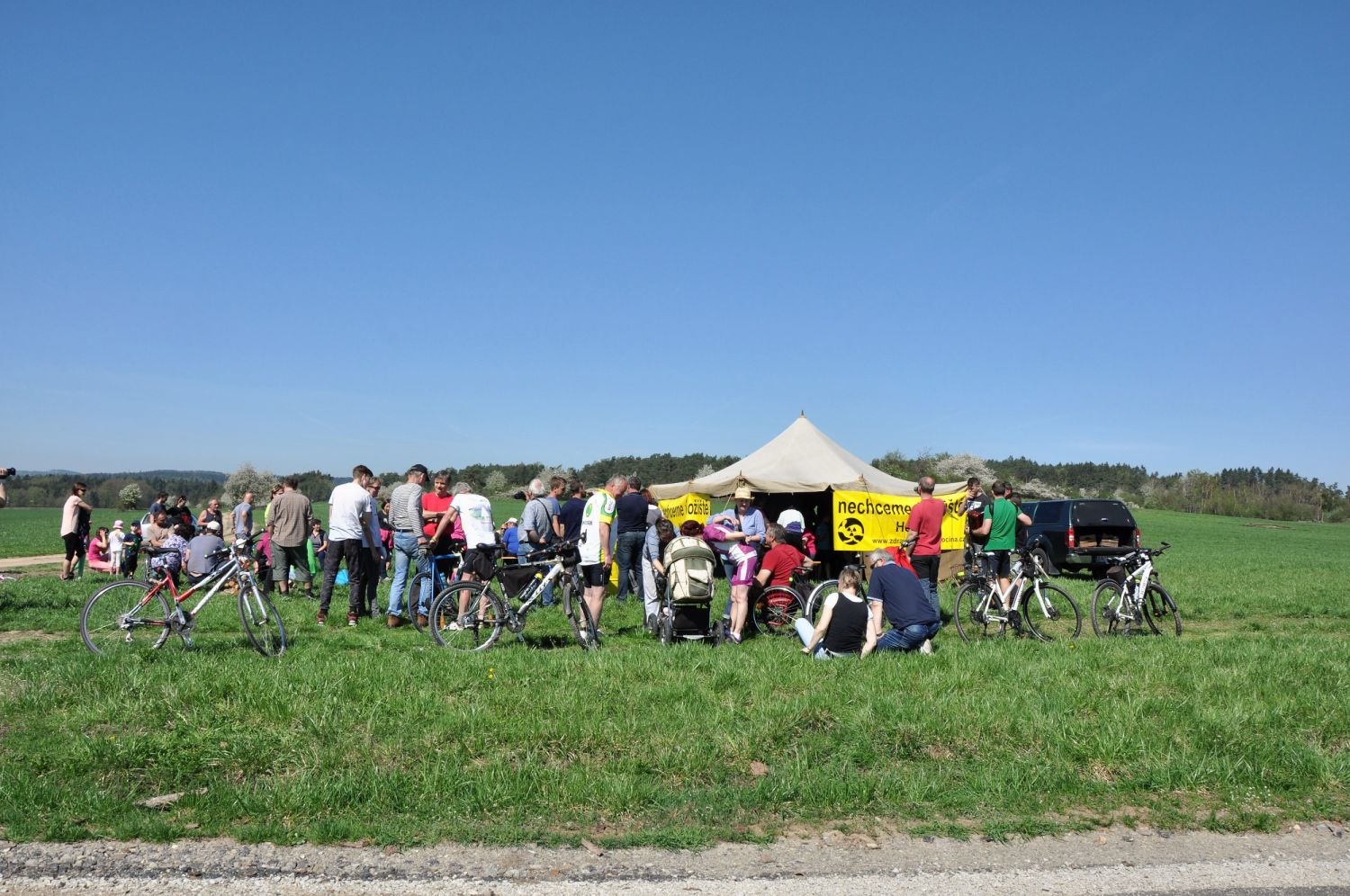 Na místě plánovaného povrchového areálu lokality zvané Horka byl postaven informační stan s občerstvením a k lepší náladě zahráli místní hudebníci. Počasí akci přálo a více než 200 příchozích si tak mohlo lépe uvědomit kontrast se stavem, který by tuto oblast čekal po zahájení výstavby úložiště. Místo zelených luk, polí a rozkvetlých stromů či remízků s bludnými balvany obří staveniště s desítkami nákladních automobilů týdně. A to horší by přišlo poté. Manipulace a následné ukládání vysoce nebezpečných odpadů, se kterými si lidstvo zatím neví rady.