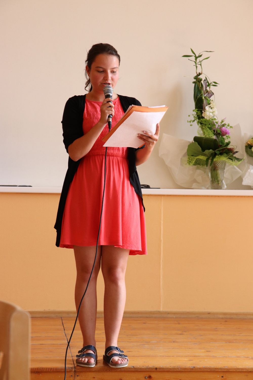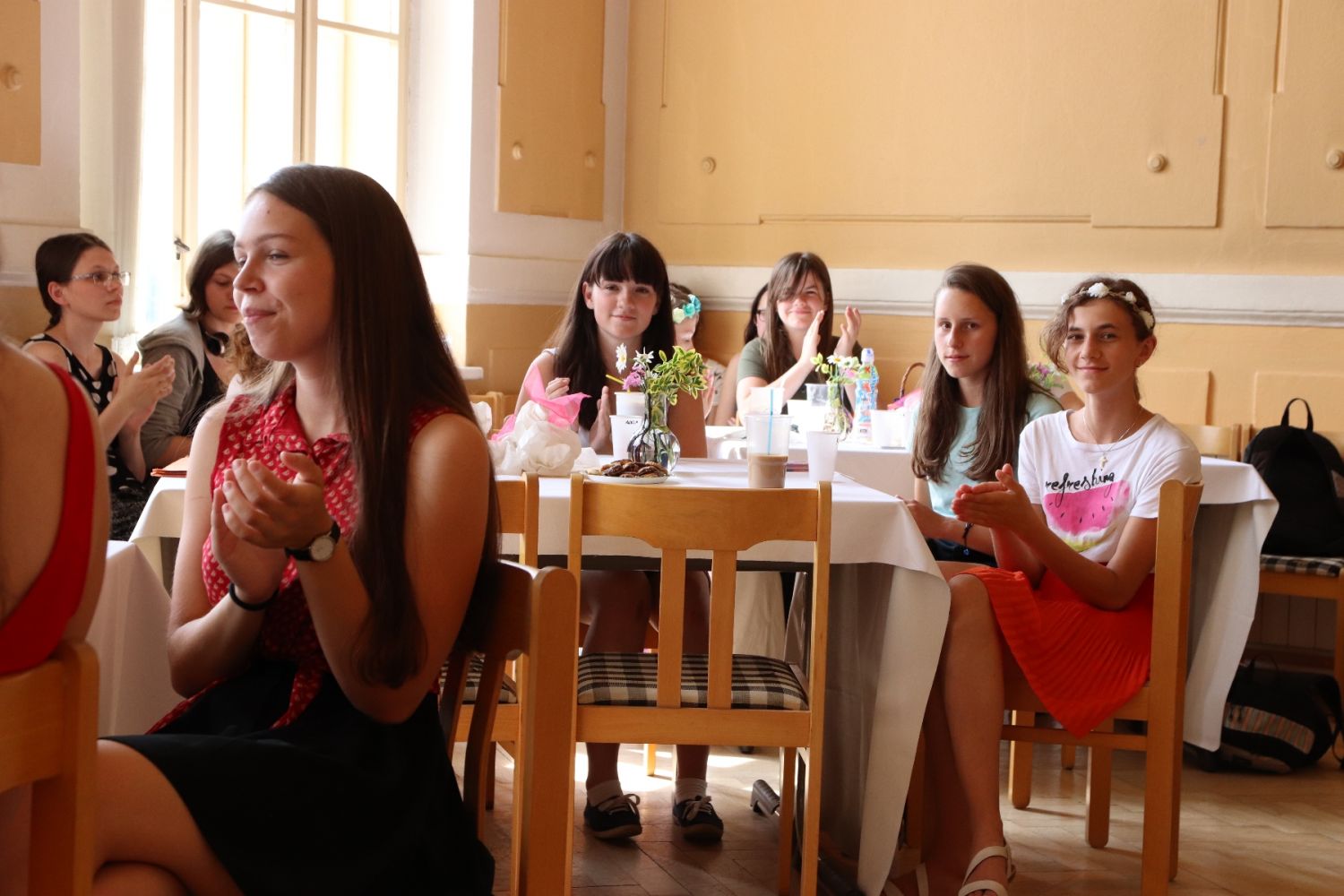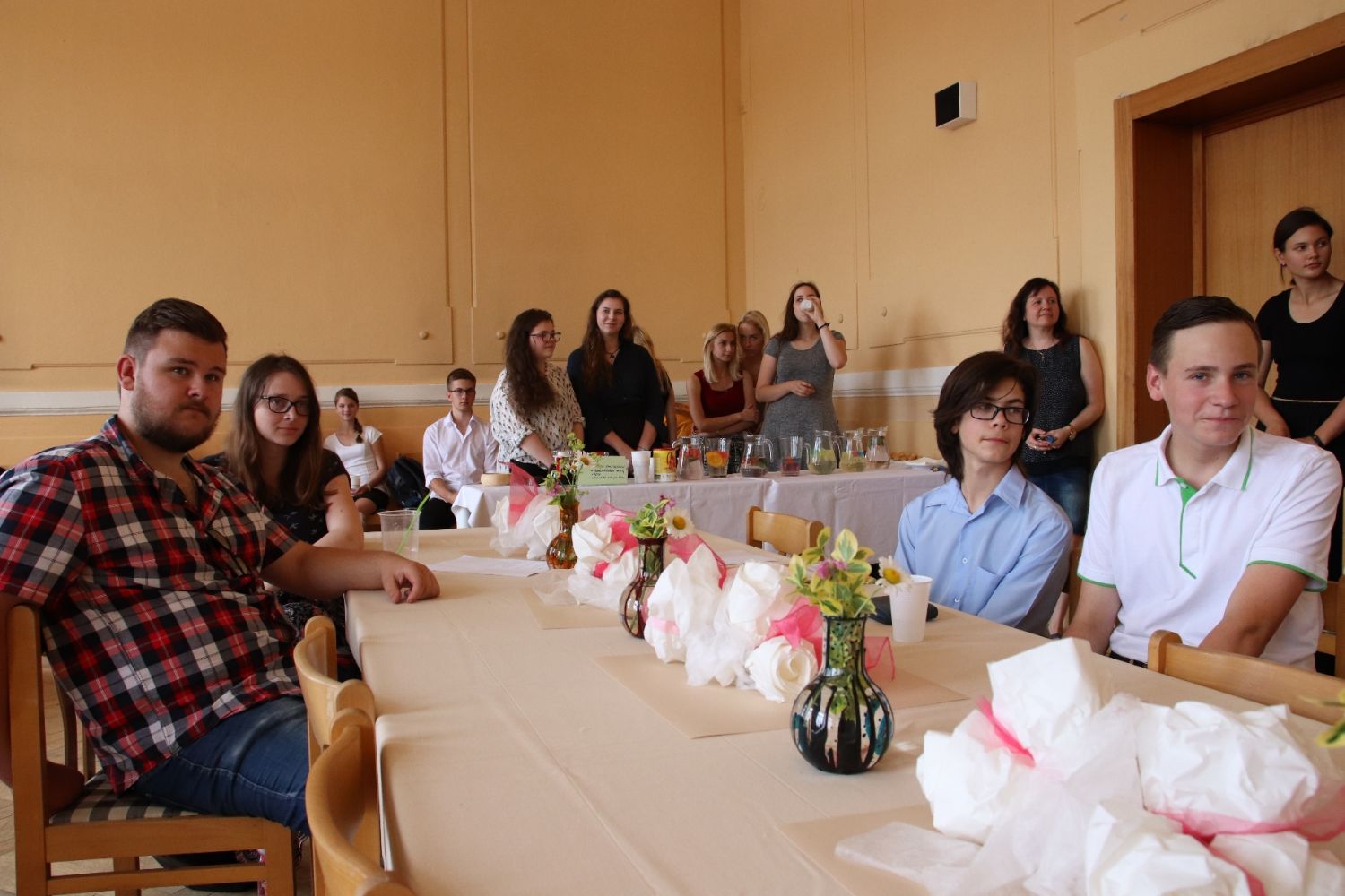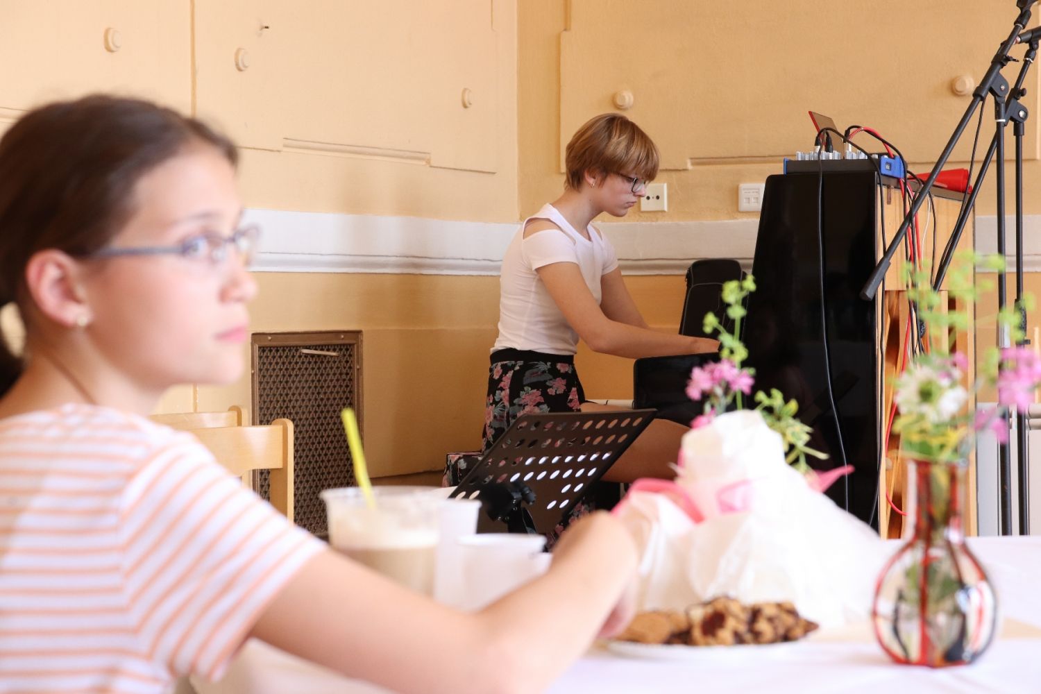 „Cílem akce je pobýt spolu a pobavit se i mimo vyučování,“ říká ředitel gymnázia Aleš Trojánek. Představil se pěvecký sbor školy, studenti přečetli vlastní literární tvorbu, další zahráli na klavír. V nabídce byly vedle kávy studené ovocné nápoje, na stolech sladkosti, nechyběly květiny.