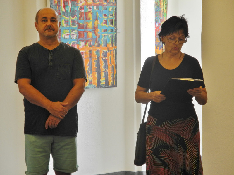 Páteční odpoledne se ve výstavním sále neslo v příjemné a uvolněné atmosféře. Kurátorka výstavy Božena Juríčkova představila jak umělce samotného, tak samozřejmě i jeho dílo.