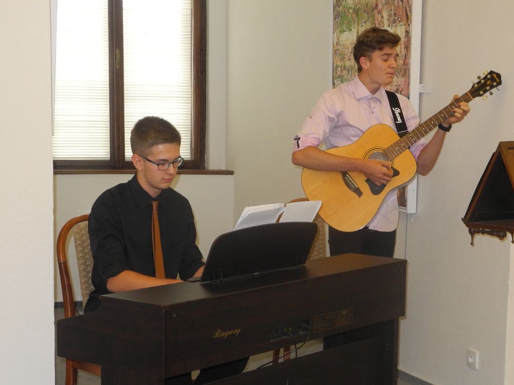 Pro návštěvníky vernisáže bylo tentokrát připraveno i krátké kulturní vystoupení. O to se postarali mladí hudebníci František Hampl a Martin Neufuss, kteří sklidili zasloužený potlesk.