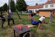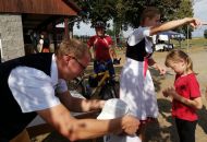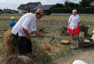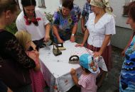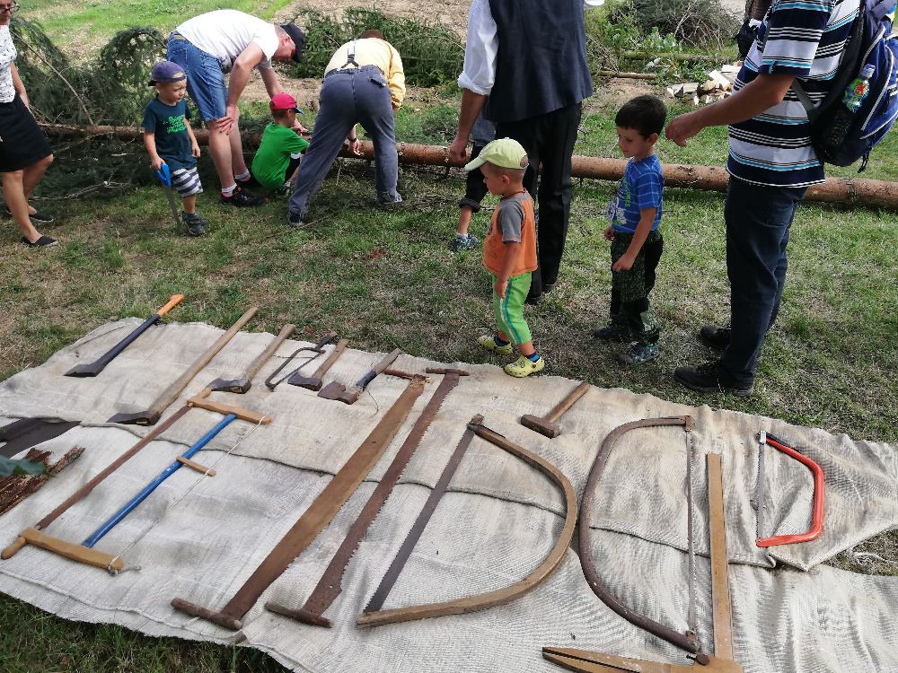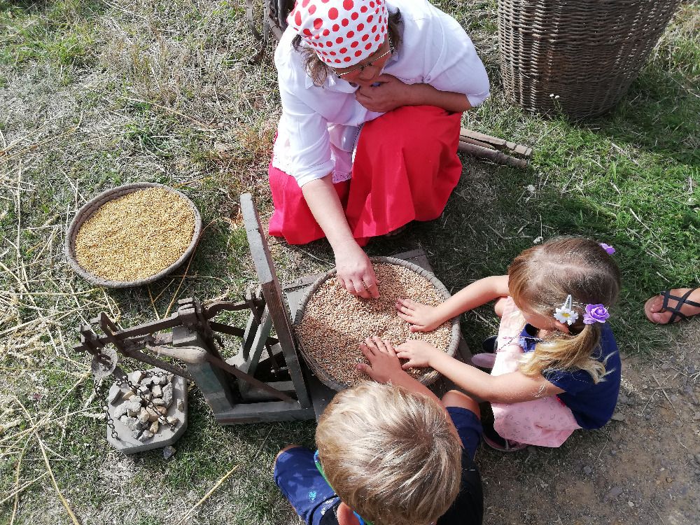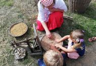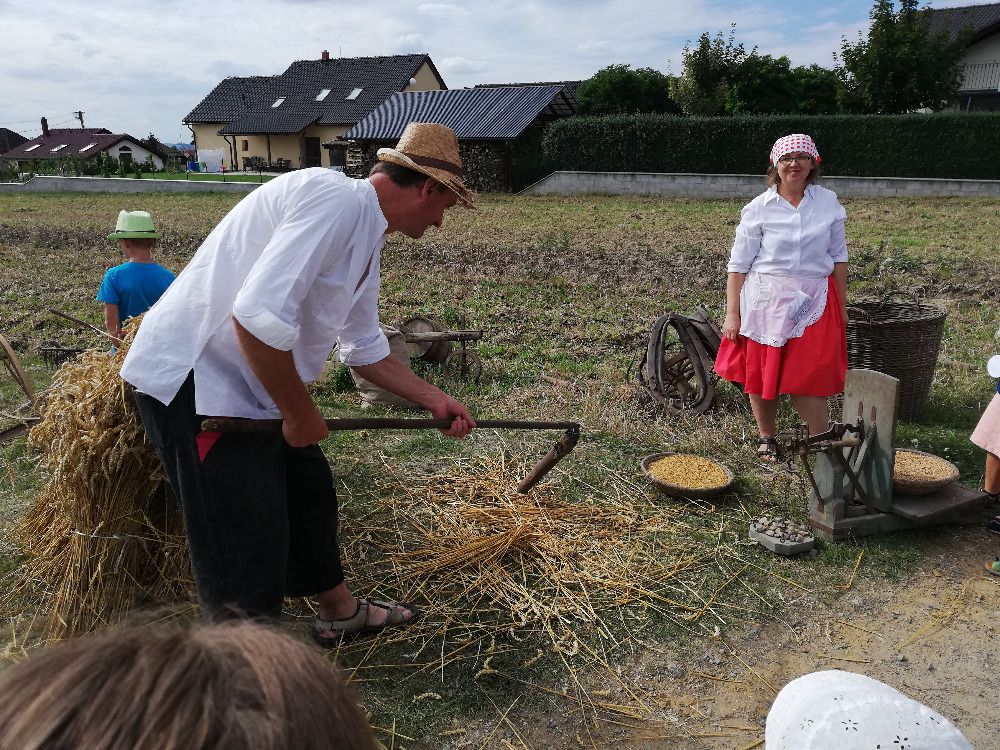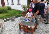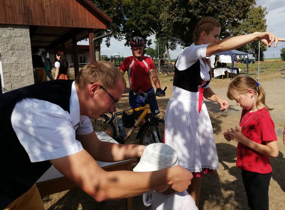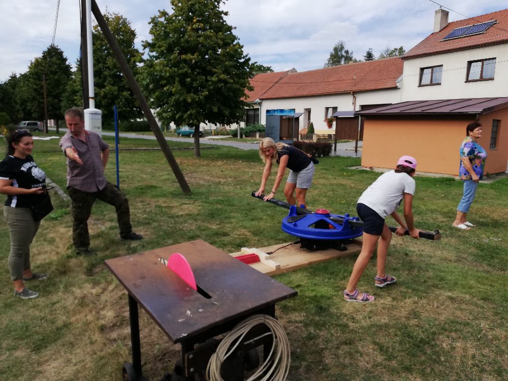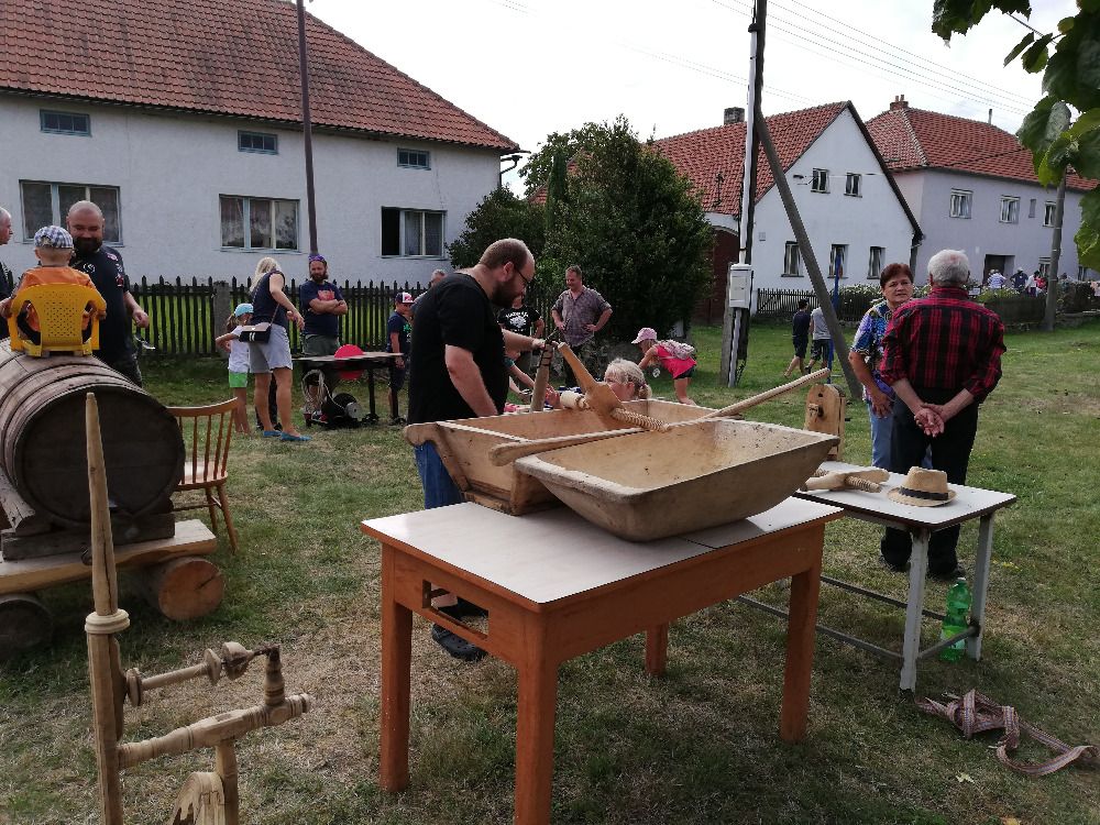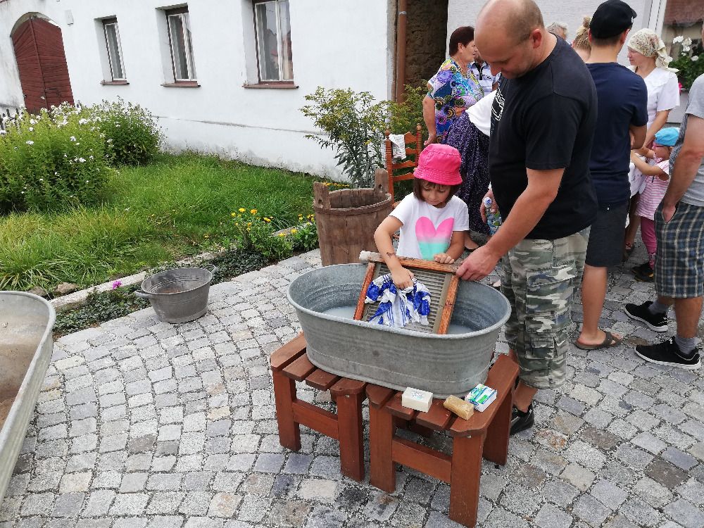 Nedělní odpoledne v Dobré Vodě patřilo dětem a jejich zvídavým a hravým rodičům. Na hřišti u školy si vyzvedli účastnickou medaili a pak se společně vydali na putování vesnicí a časem. Připraveno pro ně bylo několik zastavení, kde si mohli prakticky vyzkoušet, co obnášelo například ohoblovat prkno, vozit maltu, vyprat prádlo na valše. Ocenili práci, kterou měly ženy s těžkými žehličkami. „Všechno vystavené se našlo na půdách, každý donesl, co měl doma,“ osvětlila původ mnohdy unikátních vystavených kousků jedna z pradlenek. Jedním z nejzajímavějších a nejoceňovanějších zastavení byl žentour, který poháněl například stroje na mlácení obilí. Na jeho roztáčení, jak se přihlížející dozvěděli, se používaly krávy, které chodily dokola po dvoře. V neděli na pohon pily stačily vždy dvě nadšené děti.