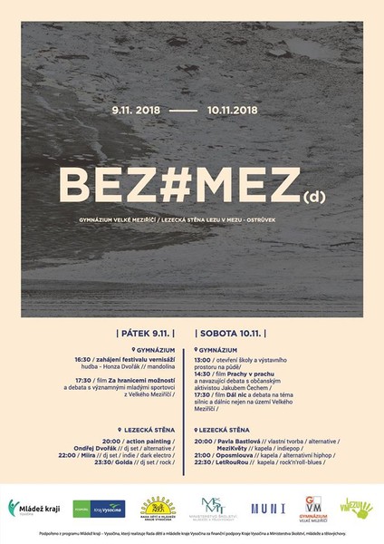 Program proběhne 9. a 10. listopadu v gymnáziu a v prostorách Lezu v Mezu. Vstup je zdarma. Podrobnější informace a novinky, či fotografie z minulého ročníku na https://www.facebook.com/FestivalBEZMEZd/.