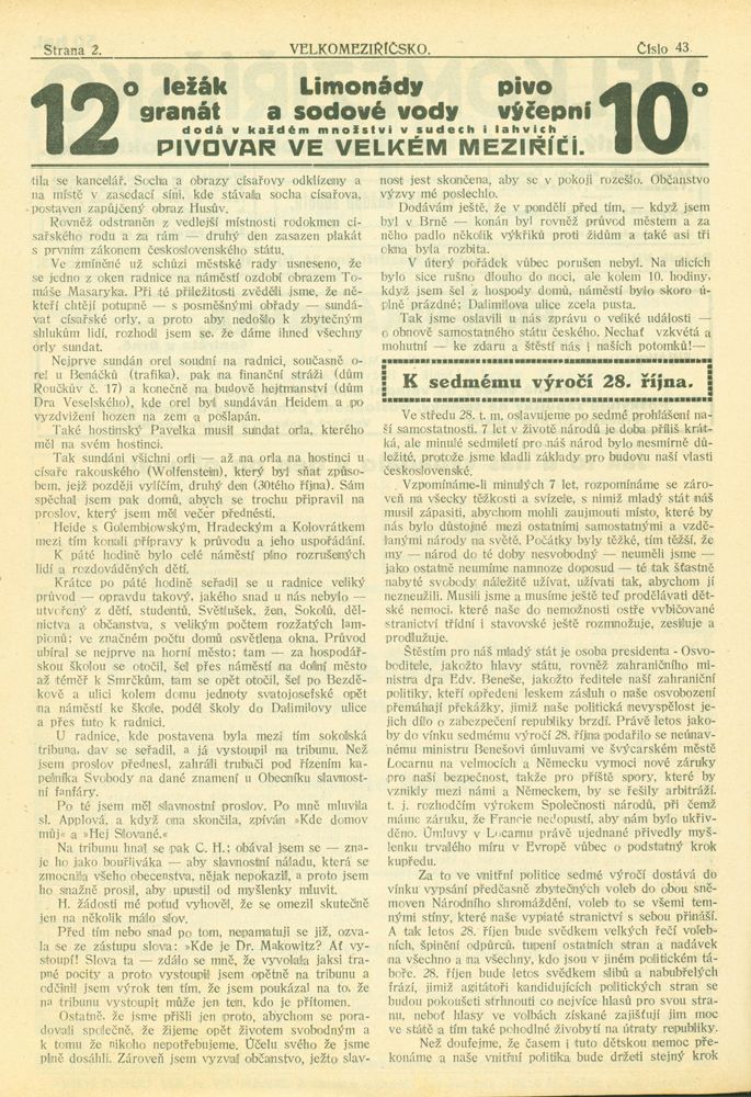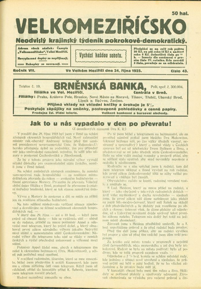 Vyšlo ve Velkomeziříčsku 24. října 1925