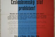 Rovněž odstraněn z vedlejší místnosti rodokmen císařského rodu a za rám – druhý den zasazen plakát s prvním zákonem československého státu.