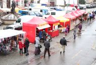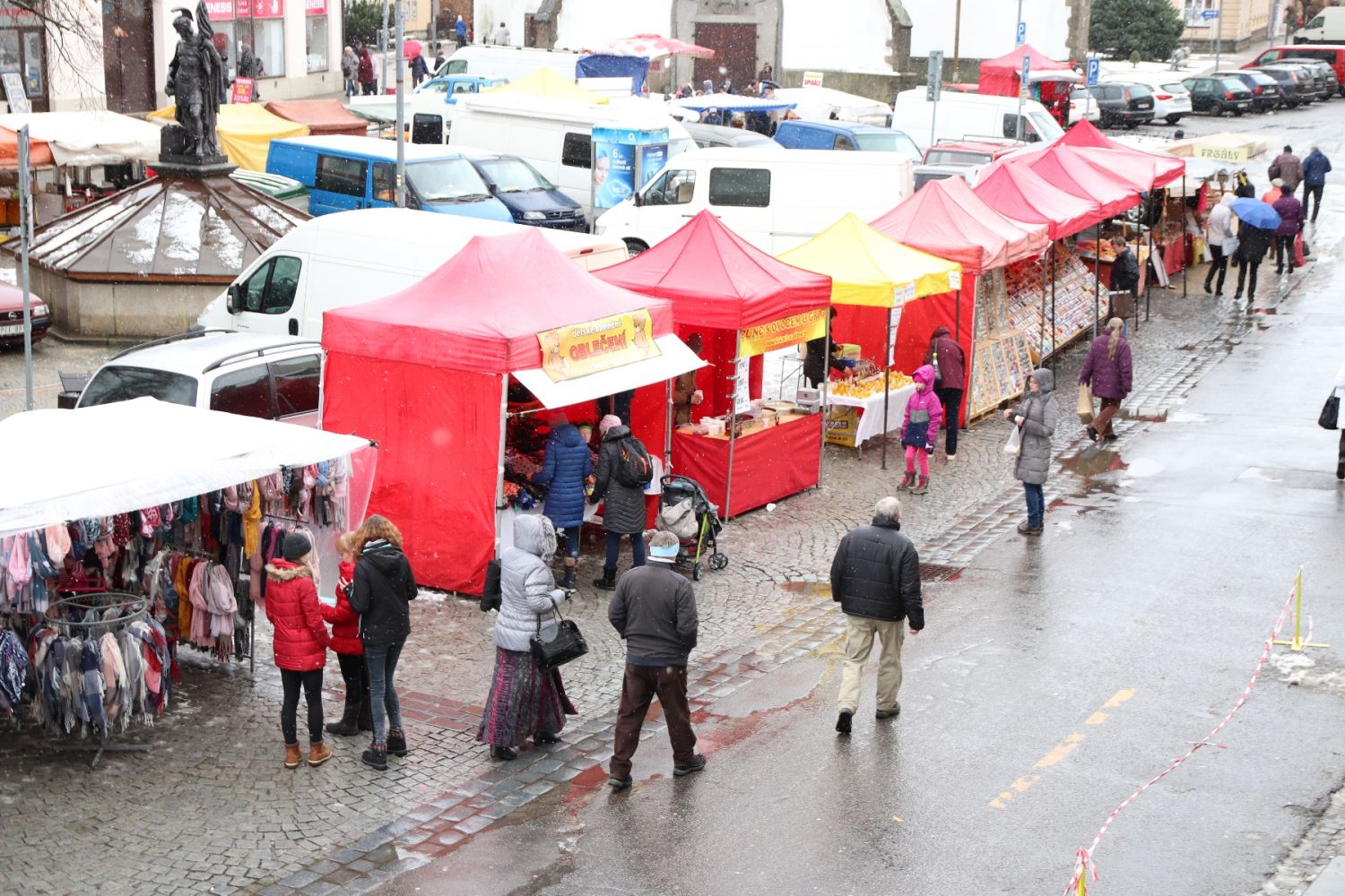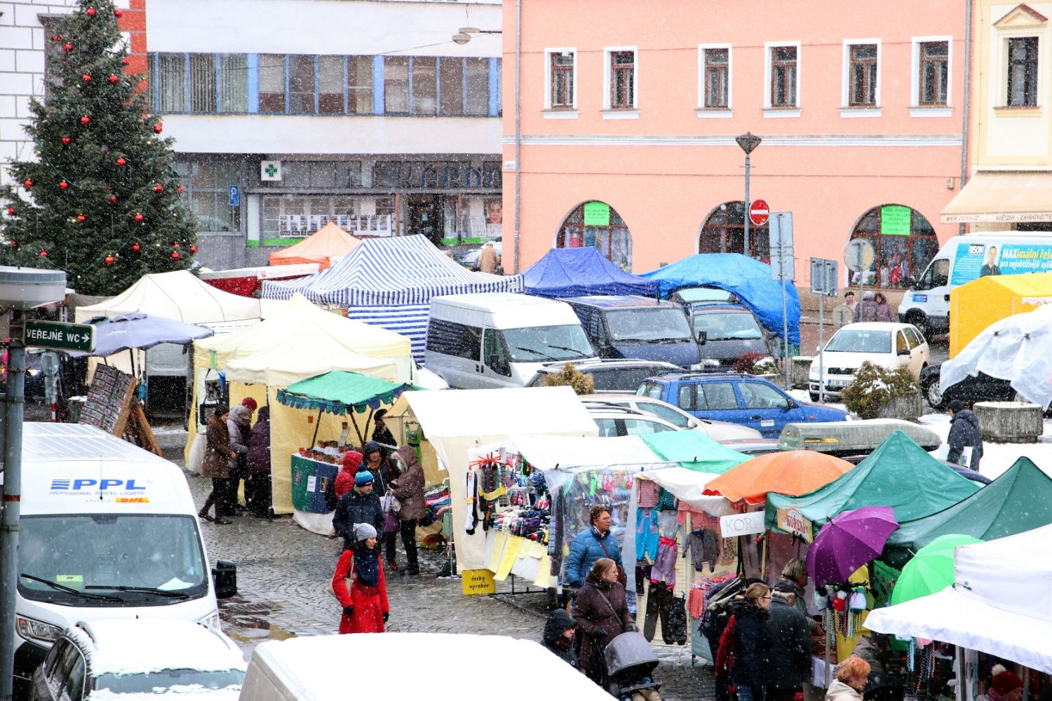 Velkomeziříčské náměstí je od úterního rána zaplněné stánky, v nichž prodejci nabízejí svoje výrobky. Probíhá vánoční řemeslný trh.
