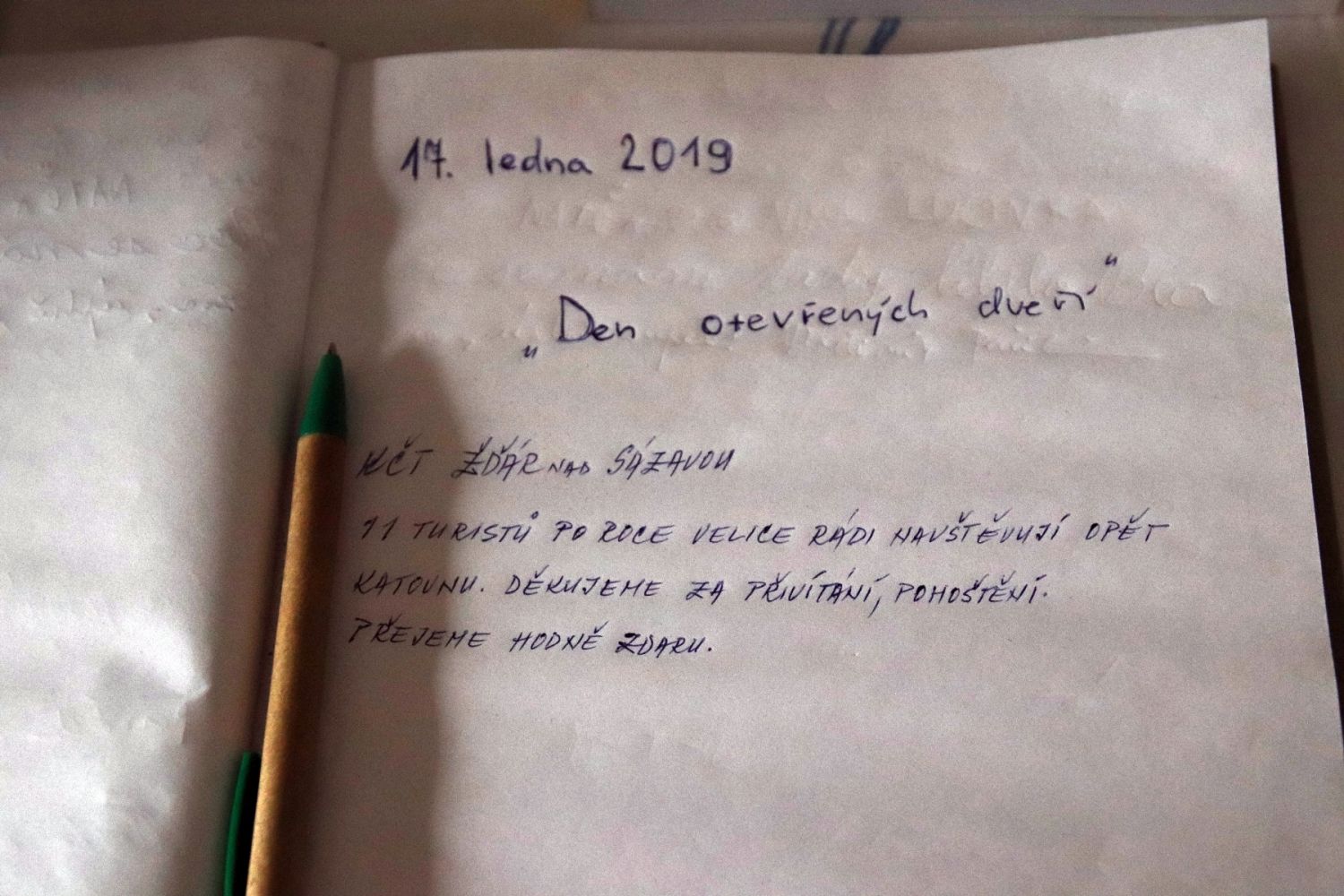Návštěvu katovny si ani letos nenechala ujít jedenáctičlenná skupina turistů ze Žďáru nad Sázavou, kteří jsou zde pravidelnými a spokojenými hosty. „Děkujeme za přivítání, pohoštění a přejeme hodně zdaru,“ napsali do pamětní knihy Tasu.