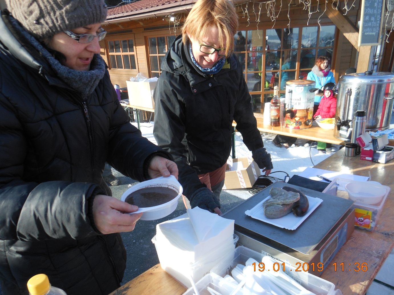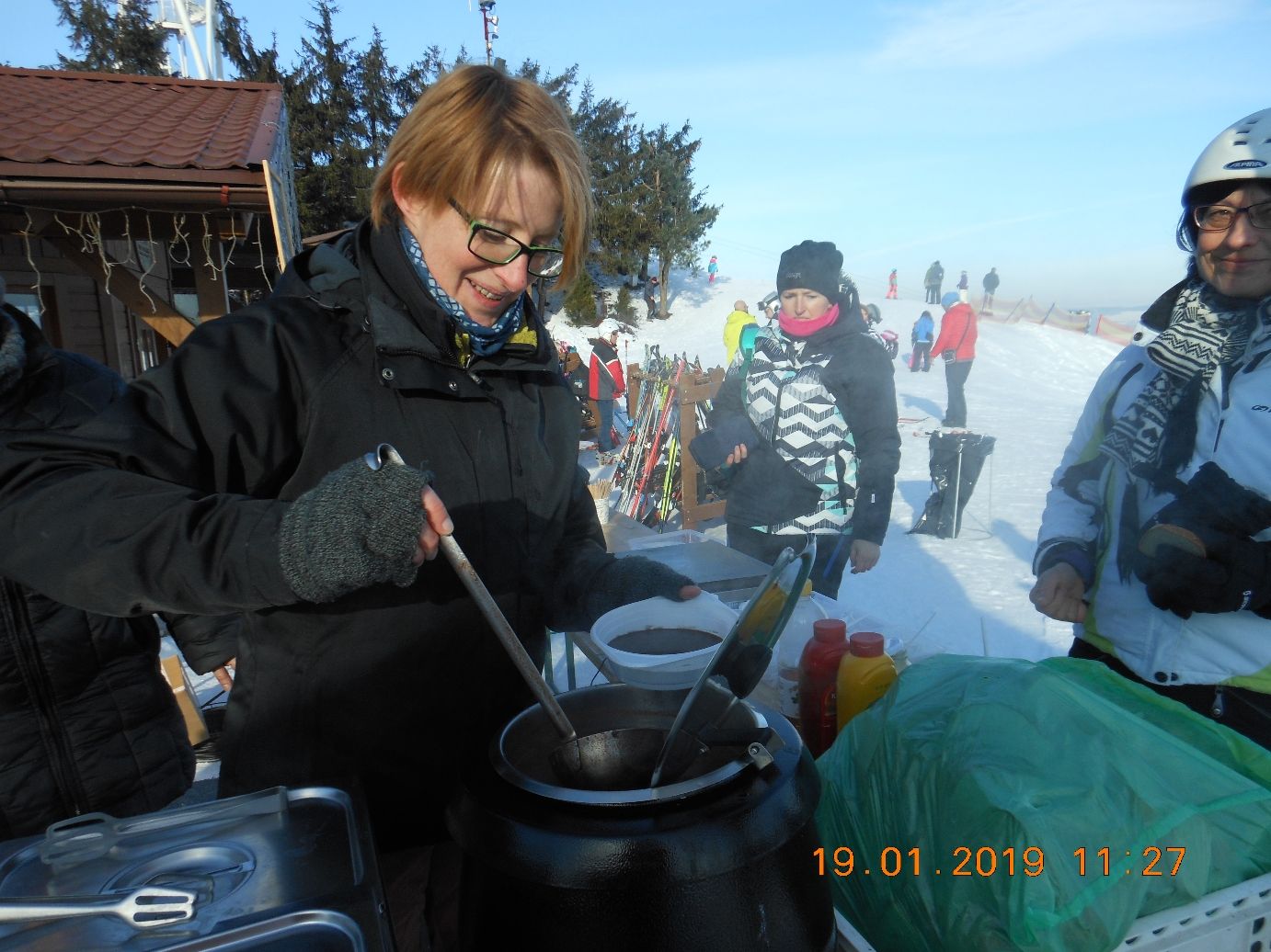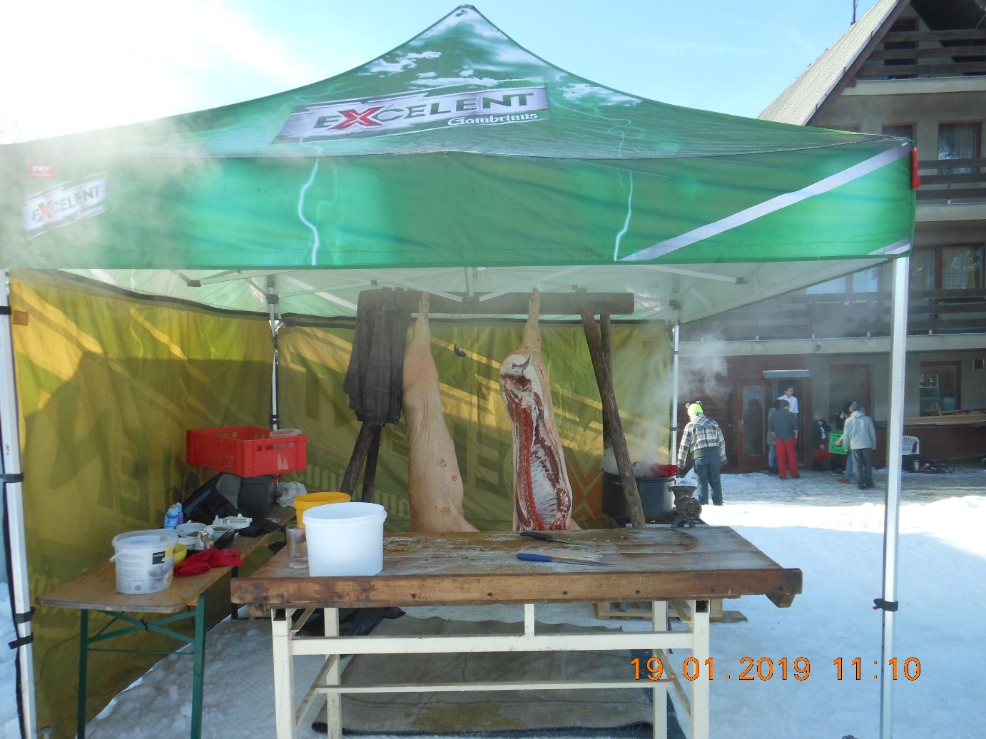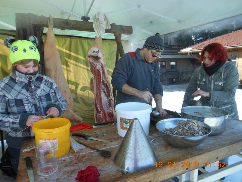 Nejen lyžaři, ale i ti, kteří vyrazili na Fajťův kopec na zimní procházku si opět mohli užít tradiční zabijačku. Ski areálem se i letos linula vůně jelit, jitrnic, polévky či škvarků.