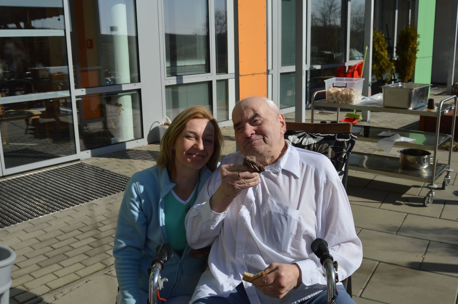 Pozvání do domova přijali i další hosté, například náměstek hejtmana pro oblast sociálních věcí Pavel Franěk a náměstek hejtmana pro oblast zdravotnictví pan Vladimír Novotný. „Jsem rád, že si vždycky někdo ze zástupců zřizovatele udělá čas a přijede na akce, které pořádáme. Je to ideální příležitost pro setkání s klienty, zaměstnanci, a nakonec i pro mě,“ líčí ředitel domova Vítězslav Schrek, kterak lze u škvarků probrat důležité provozní a finanční záležitosti sociálních služeb. Zabíjačka se povedla i díky partnerům domova. Pořízení letošního pašíka již tradičně finančně podpořila společnost Kooperativa.