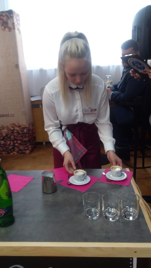 Úkolem baristů, Bohumila Slámy, Nicole Linhartové a Lucie Lacinové, bylo připravit v časovém limitu 2x10 minut dvě porce Espresso macchiato, Cappuccino, Latte macchiato s vytvořením motivu na povrchu mléka dle vlastní fantazie a kavárenským servisem prezentovat zadané nápoje. Všichni soutěžící obdrželi za svoji svědomitou přípravu a profesionální výkony diplomy, medaile a hodnotné věcné dary. Děkujeme žákům za vzornou reprezentaci školy, profesionální přístup a přejeme ještě mnoho úspěchů!