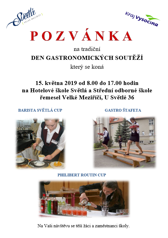 Ve středu 15. května 2019 pořádá Hotelová škola Světlá a Střední odborná škola řemesel Velké Meziříčí tradiční den gastronomických soutěží, kterých se zúčastňují žáci odborných škol z celé republiky i ze zahraničí.