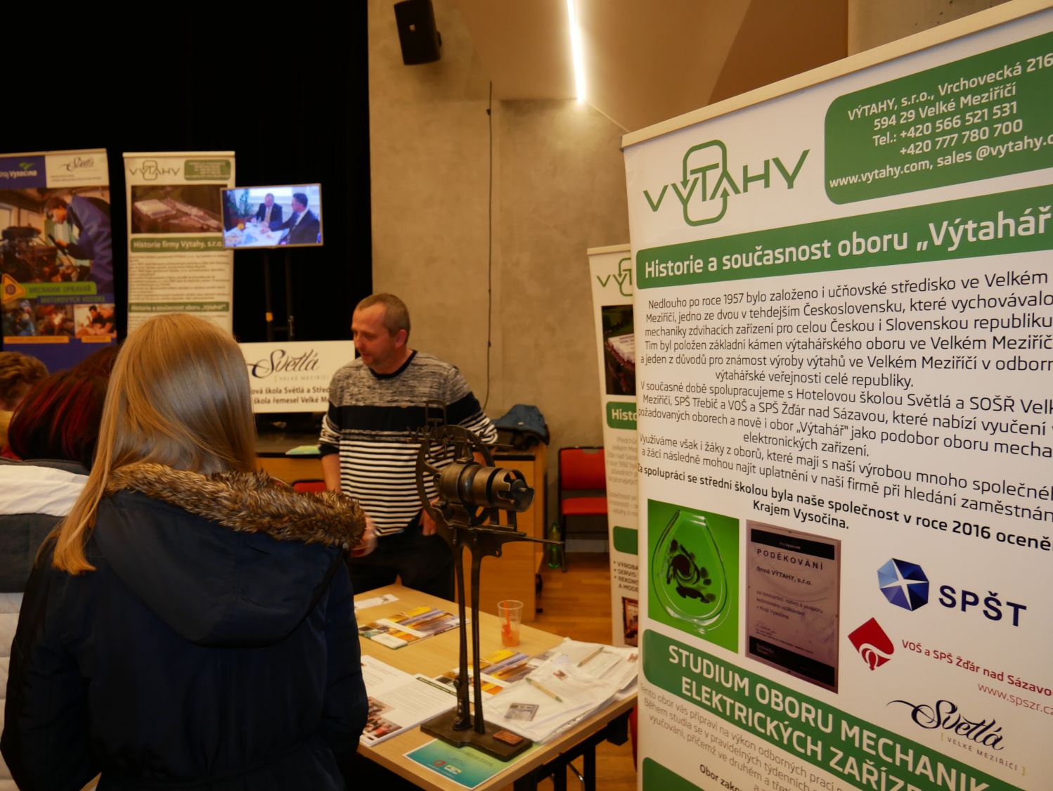 Mezi vystavujícími středními školami zde měla svůj stánek i velkomeziříčská společnost Výtahy, která nabízí žákům obor výtahář na Hotelové škole Světlá a střední odborné škole řemesel, během učení praxi a poté i zaměstnání.