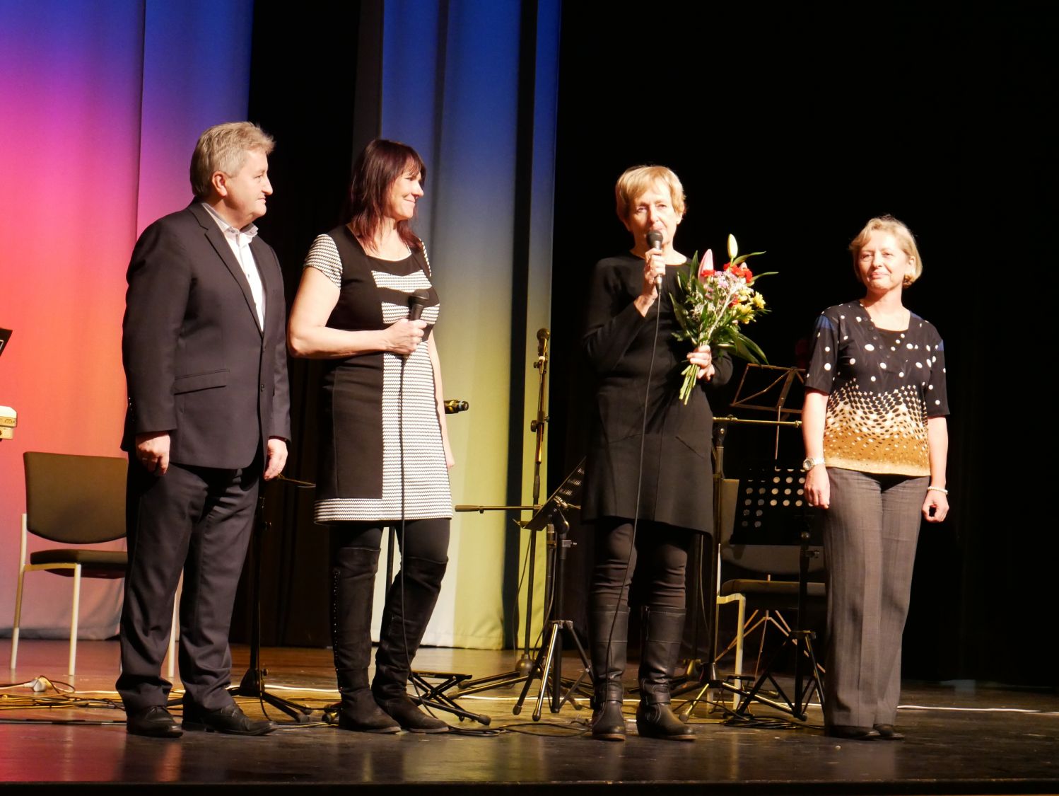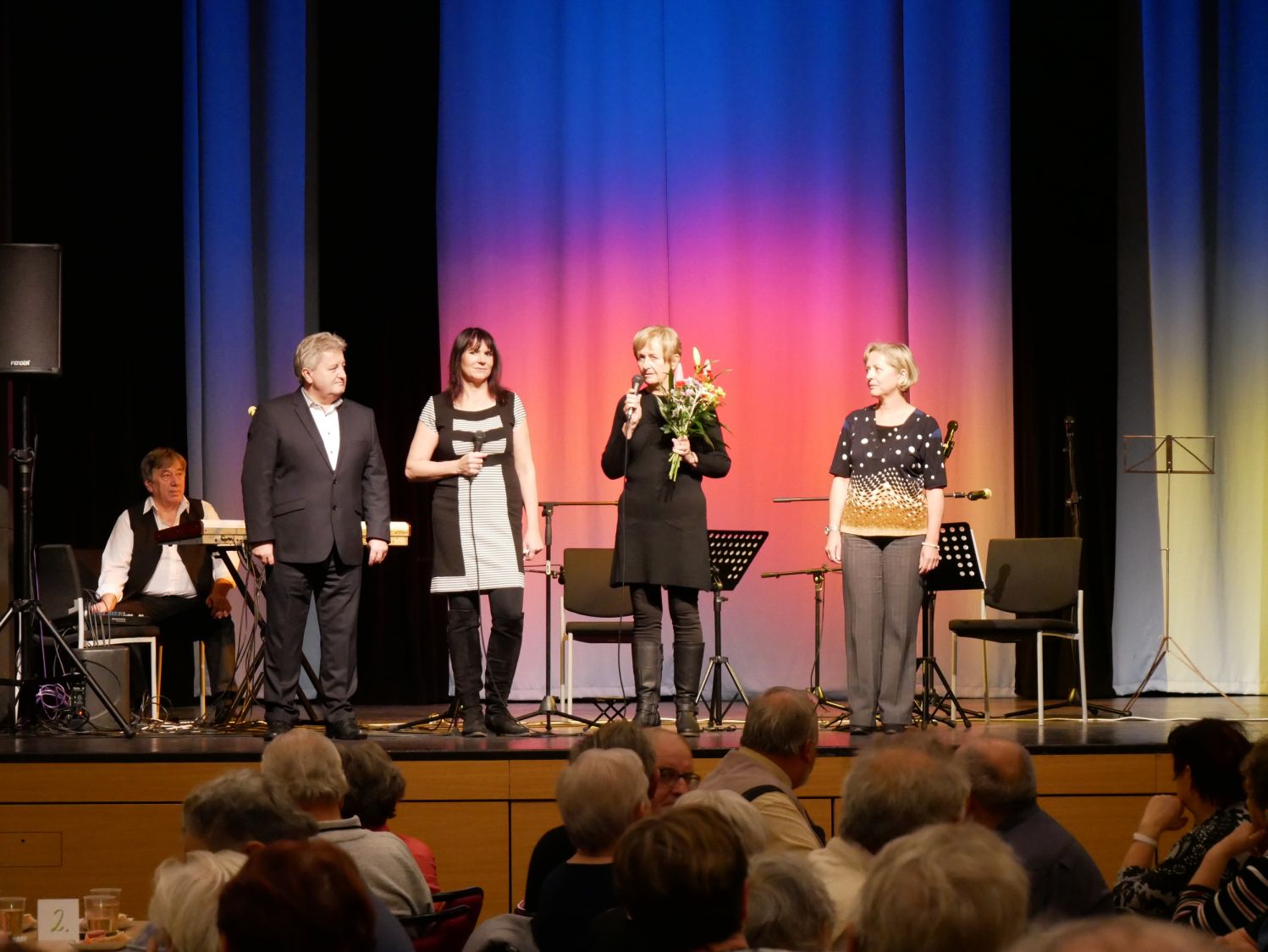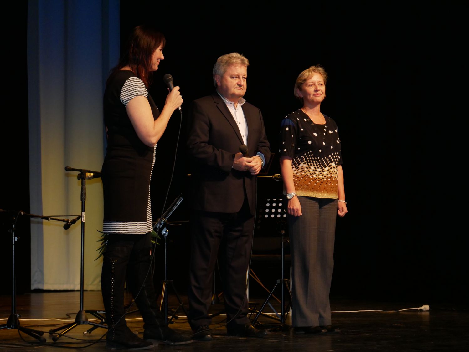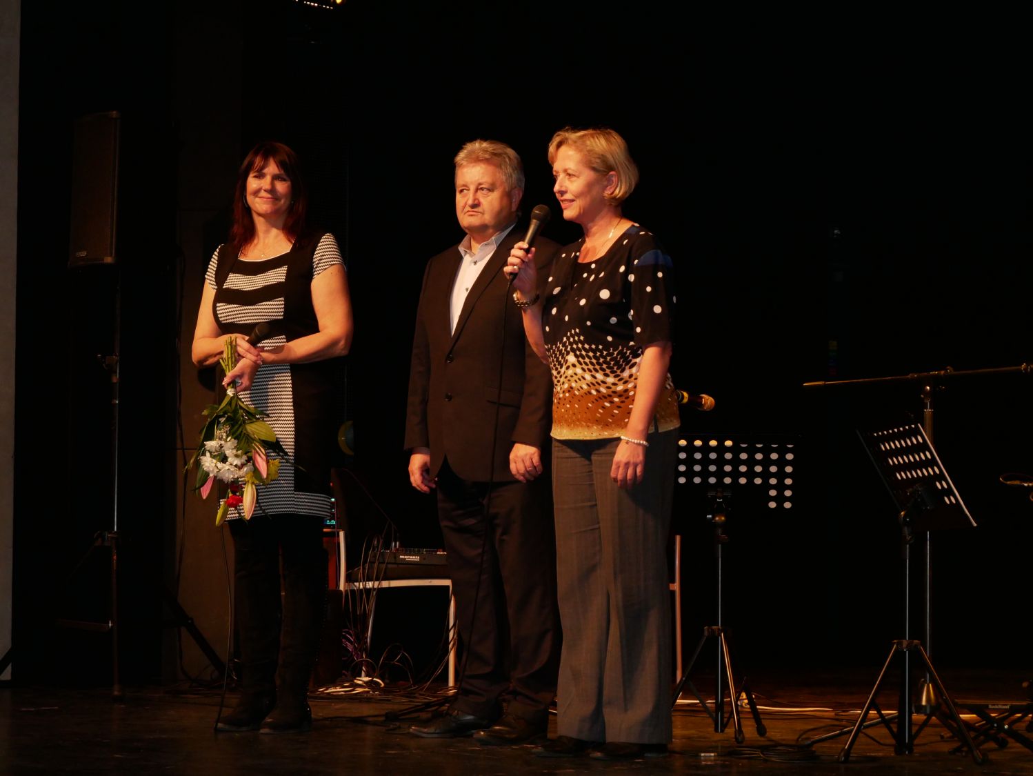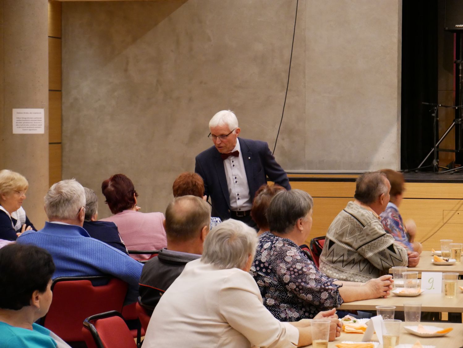 Návštěvníky oblíbeného setkání přivítal starosta města Josef Komínek s místostarostkou Jiřinou Jurdovou, kteří společně s ředitelkou Sociálních služeb města Velké Meziříčí Janou Jurkovou předali květinu bývalé ředitelce městských sociálních služeb Daně Maňasové.