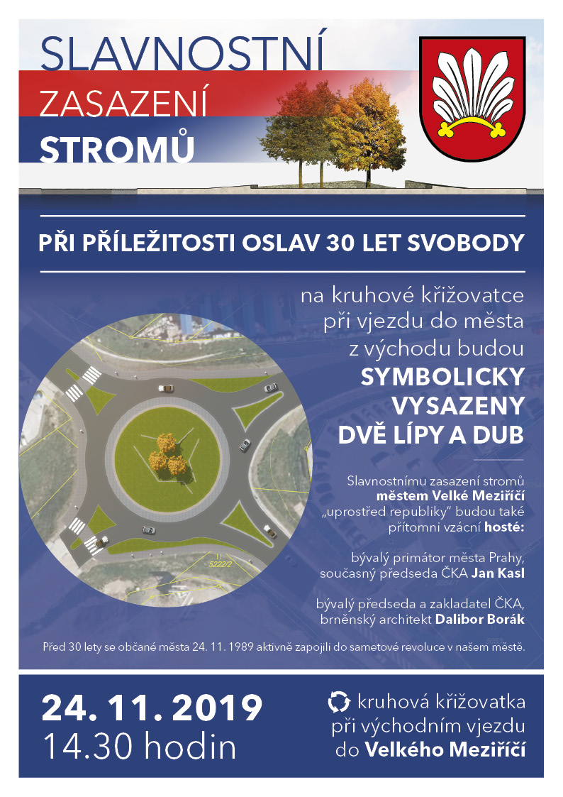 Město Velké Meziříčí u příležitosti oslav 30 let svobody vysadí v neděli 24. listopadu od 14:30 hodin na kruhové křižovatce při východním vjezdu do města tři stromy. Symbolicky v den, ve kterém se občané města aktivně zapojili do sametové revoluce.